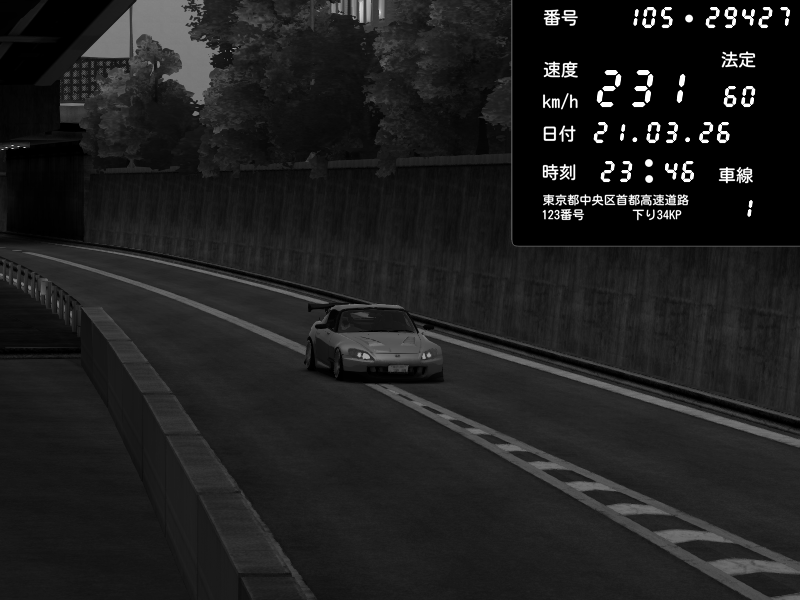 | 2026/03/21 23:46 | C1外回り 新富町 | 141 / 60 km/h | Honda S2000 (AP2 - Legendary) | CAPTURE |