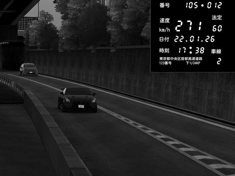 | 2026/01/22 17:38 | C1外回り 京橋 | 271 / 60 km/h | Nissan GT-R NISMO 2017 | CAPTURE |