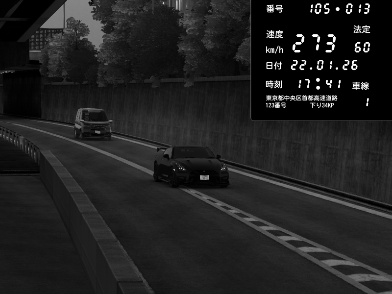 | 2026/01/22 17:41 | C1外回り 京橋 | 273 / 60 km/h | Nissan GT-R NISMO 2017 | CAPTURE |