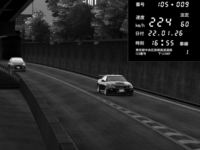 | 2026/01/22 17:00 | C1外回り 京橋 | 285 / 60 km/h | Nissan Skyline GT-R R34 Nismo Omori Factory S1 | CAPTURE |