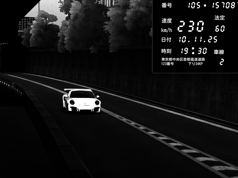 | 2025/11/10 19:30 | C1外回り 京橋 | 230 / 60 km/h | Porsche 911 GT3 RS | CAPTURE |