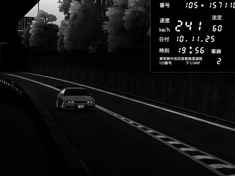 | 2025/11/10 19:56 | C1外回り 新富町 | 132 / 60 km/h | Nissan Skyline GTR R33 (S3 - Wangan) | CAPTURE |