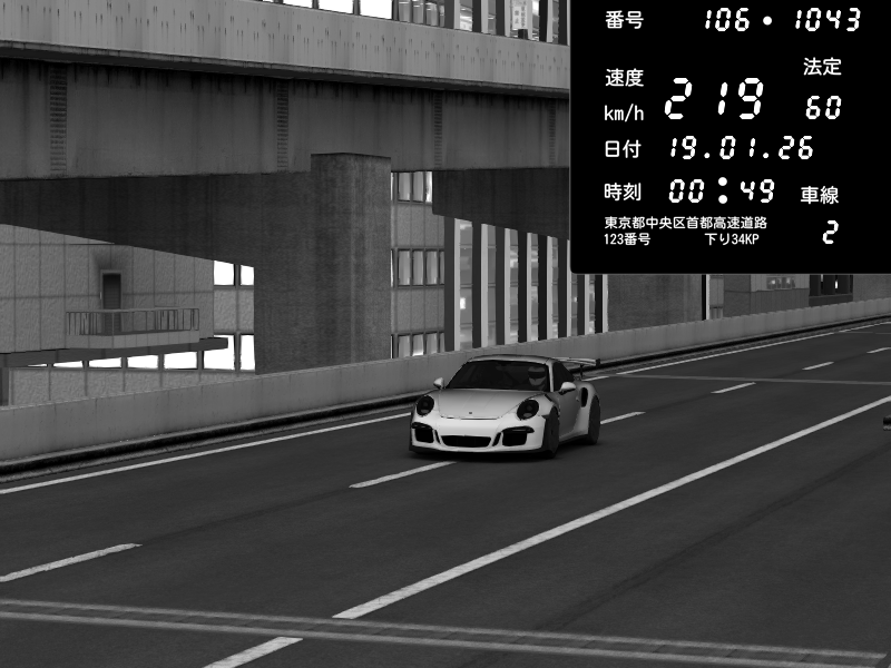 | 2026/01/19 00:45 | C1内回り 竹橋JCT | 147 / 60 km/h | Porsche 911 GT3 RS | CAPTURE |