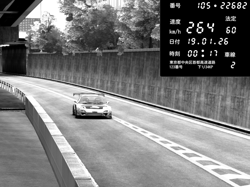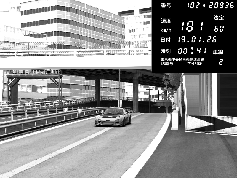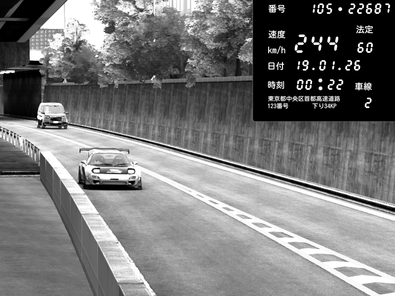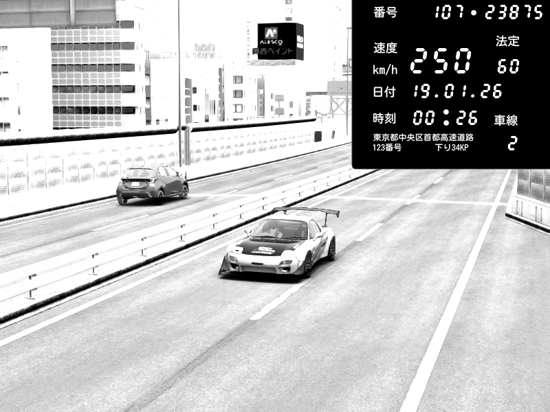 | 2026/01/19 00:32 | C1内回り 竹橋JCT | 176 / 60 km/h | Mazda RX-7 FD3S FEED Afflux GT3 | CAPTURE |