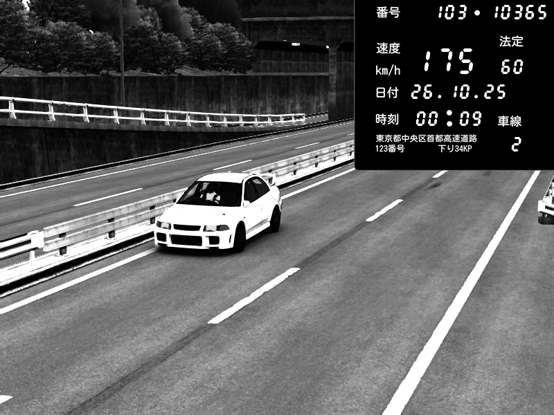 | 2025/10/26 00:09 | C1内回り 銀座 | 175 / 60 km/h | Mitsubishi Lancer Evolution V Wangan Spec | CAPTURE |