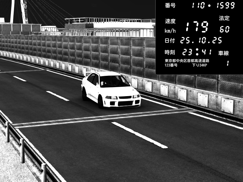| 2025/10/25 23:00 | C1外回り 芝公園 | 211 / 60 km/h | Mitsubishi Lancer Evolution V Wangan Spec | CAPTURE |