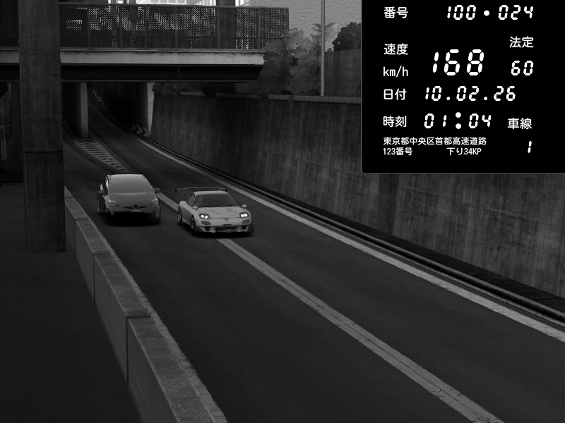 | 2026/02/10 01:00 | C1内回り 竹橋JCT | 190 / 60 km/h | Mazda RX-7 FD3S RE Amemiya | CAPTURE |