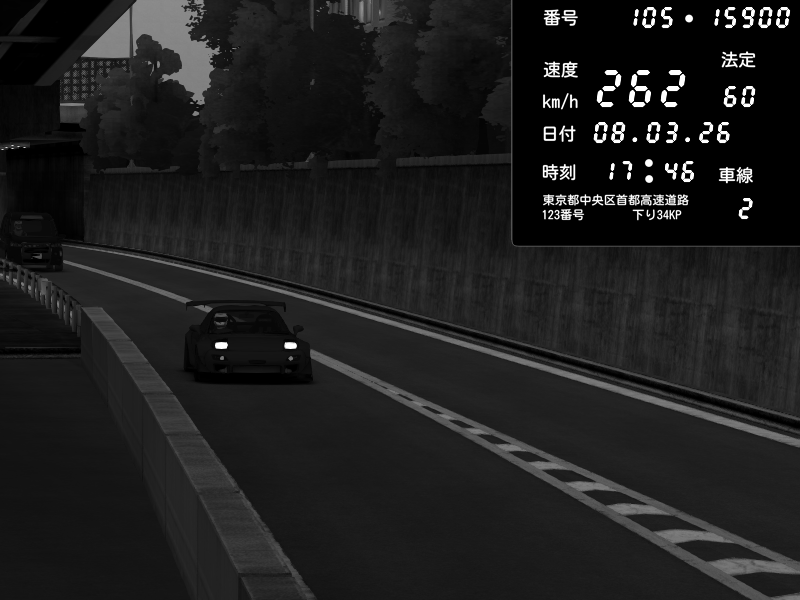 | 2026/03/08 17:38 | C1外回り 芝公園 | 235 / 60 km/h | Mazda RX-7 FD3S FEED Afflux GT3 | CAPTURE |