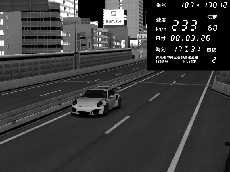 | 2026/03/08 17:31 | C1外回り 芝公園 | 233 / 60 km/h | Porsche 911 GT3 RS | CAPTURE |