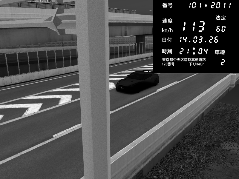 | 2026/03/14 21:04 | C1内回り 竹橋JCT | 113 / 60 km/h | Nissan GT-R NISMO 2017 | CAPTURE |