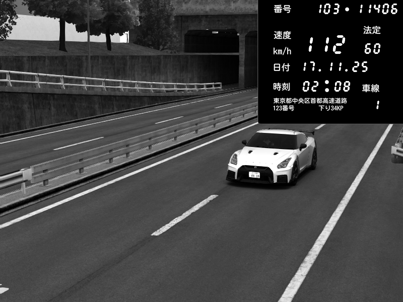 | 2025/11/17 02:08 | C1内回り 銀座 | 112 / 60 km/h | Nissan GT-R NISMO 2017 | CAPTURE |