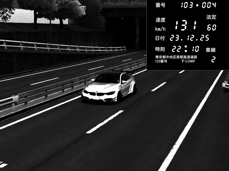 | 2025/12/23 22:10 | C1内回り 銀座 | 131 / 60 km/h | BMW M4 crash.Sp Varis Widebody | CAPTURE |