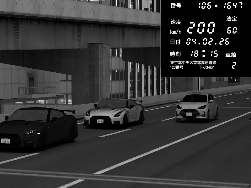 | 2026/02/04 18:15 | 9号下り 木場 | 200 / 60 km/h | Nissan GT-R NISMO 2017 | CAPTURE |