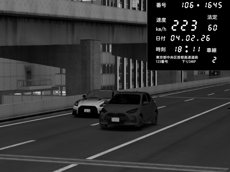 | 2026/02/04 18:11 | 9号下り 木場 | 223 / 60 km/h | Nissan GT-R NISMO 2017 | CAPTURE |
