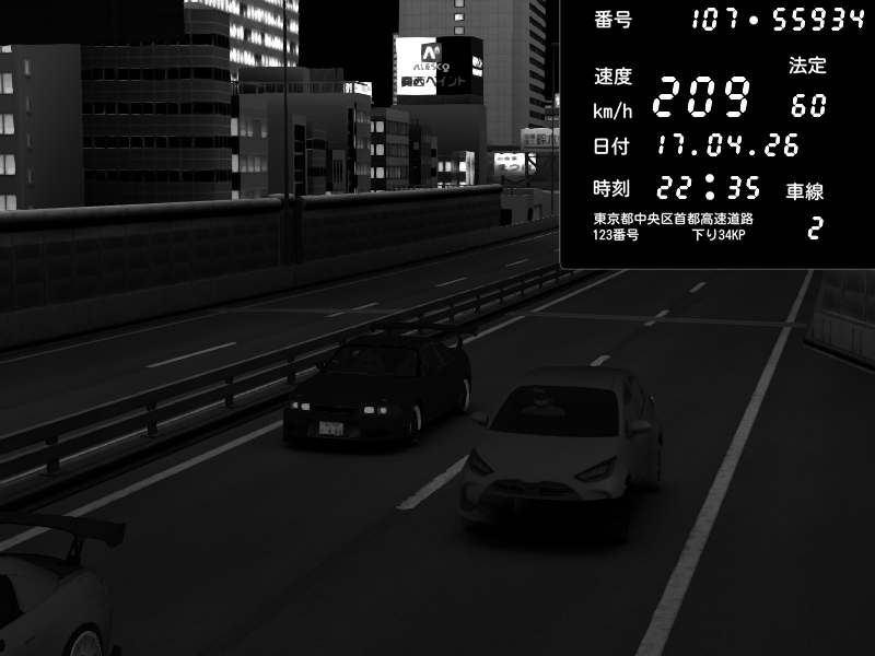 | 2026/04/17 22:35 | C1外回り 芝公園 | 209 / 60 km/h | Nissan Skyline GTR R33 (S3 - Wangan) | CAPTURE |
