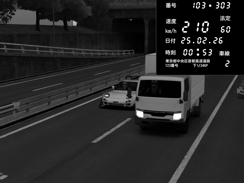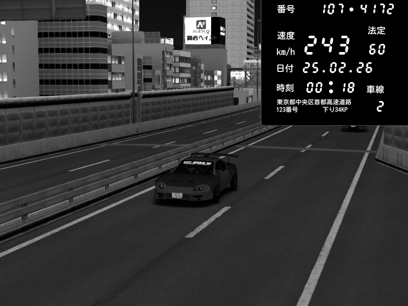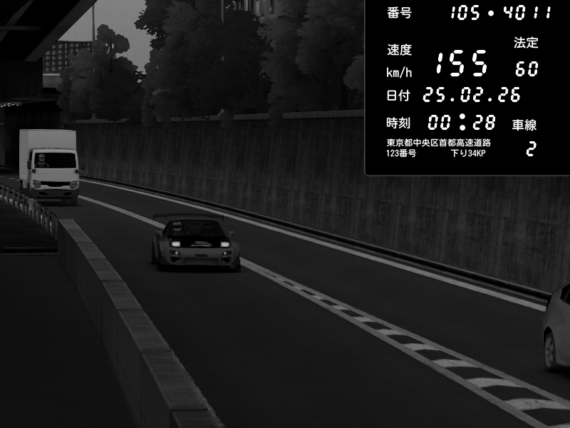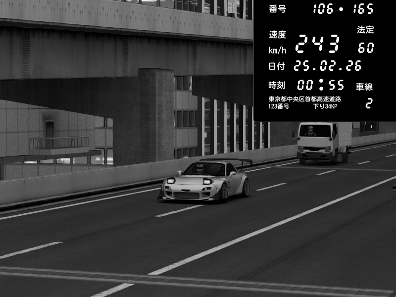 | 2026/02/25 00:53 | C1内回り 京橋 | 198 / 60 km/h | Mazda RX-7 FD3S FEED Afflux GT3 | CAPTURE |