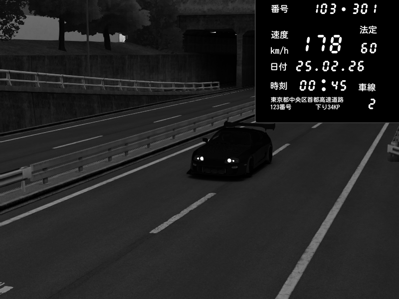 | 2026/02/25 00:45 | C1内回り 銀座 | 178 / 60 km/h | Toyota Supra MKIV Time Attack | CAPTURE |