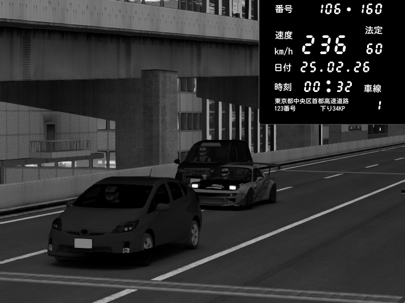 | 2026/02/25 00:19 | C1外回り 芝公園 | 243 / 60 km/h | Pit Road M - Mitsubishi GTO Twin Turbo | CAPTURE |
