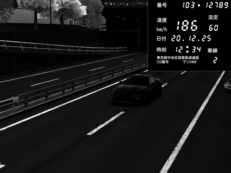 | 2025/12/20 12:34 | C1内回り 銀座 | 186 / 60 km/h | Toyota Supra MKIV Time Attack | CAPTURE |