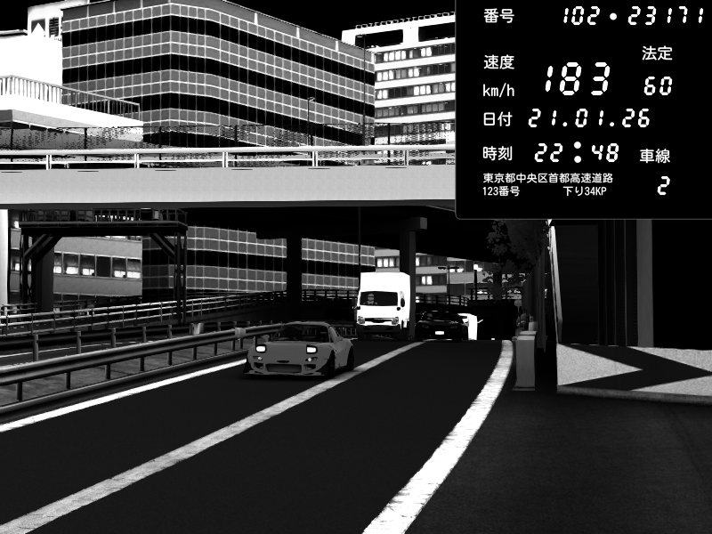 | 2026/01/21 22:48 | C1外回り 新富町 | 183 / 60 km/h | Mazda RX-7 FD3S FEED Afflux GT3 | CAPTURE |
