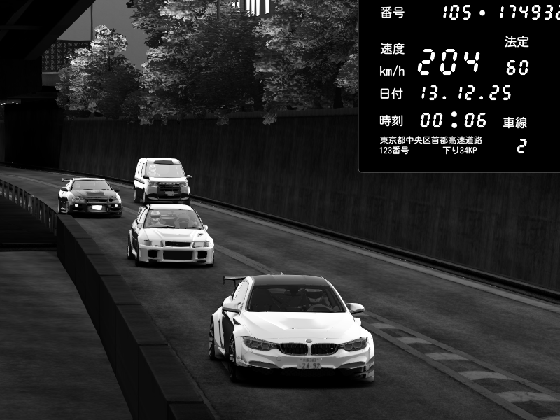 | 2025/12/13 00:06 | C1外回り 京橋 | 204 / 60 km/h | Mitsubishi Lancer Evolution V Wangan Spec | CAPTURE |
