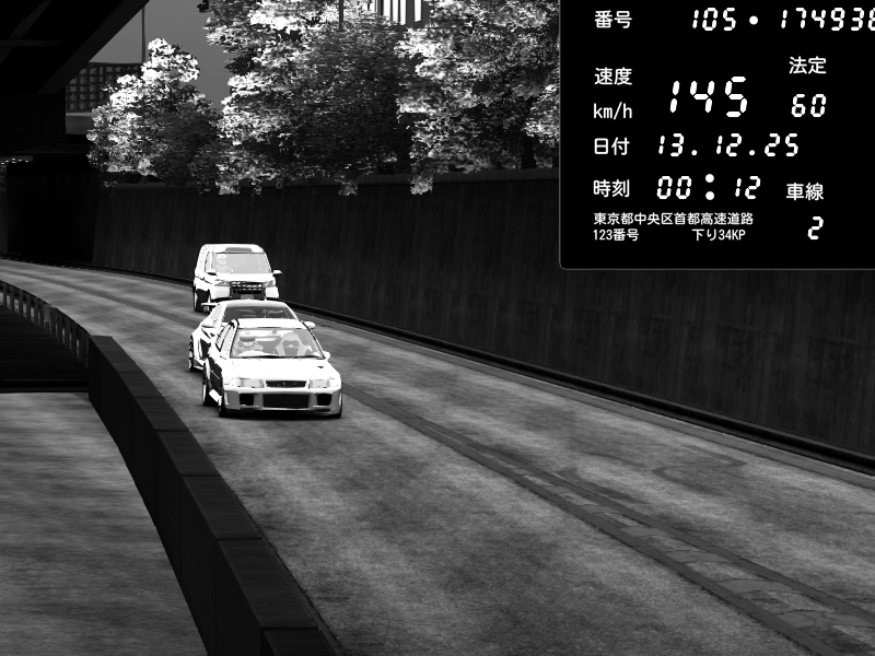 | 2025/12/13 00:12 | C1外回り 新富町 | 136 / 60 km/h | Mitsubishi Lancer Evolution V Wangan Spec | CAPTURE |