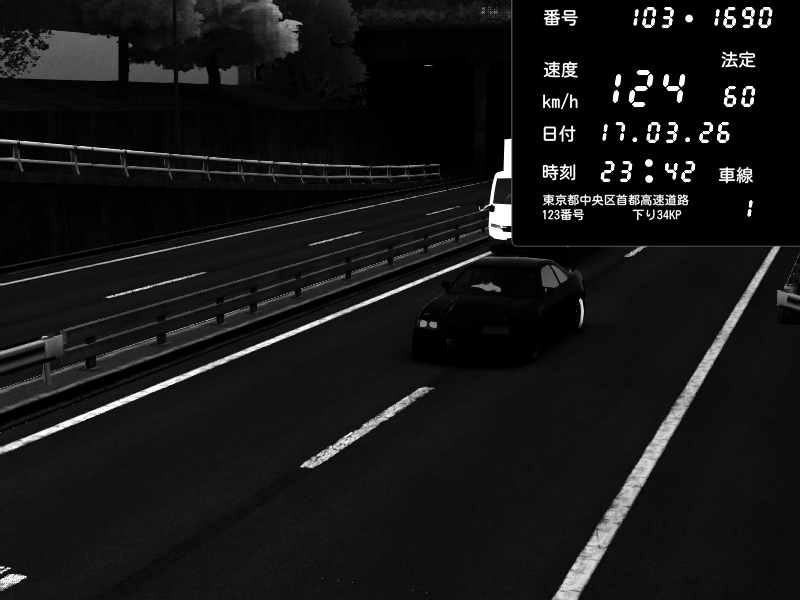 | 2026/03/17 23:42 | C1内回り 銀座 | 124 / 60 km/h | Nissan Skyline GTR R33 (S3 - Wangan) | CAPTURE |