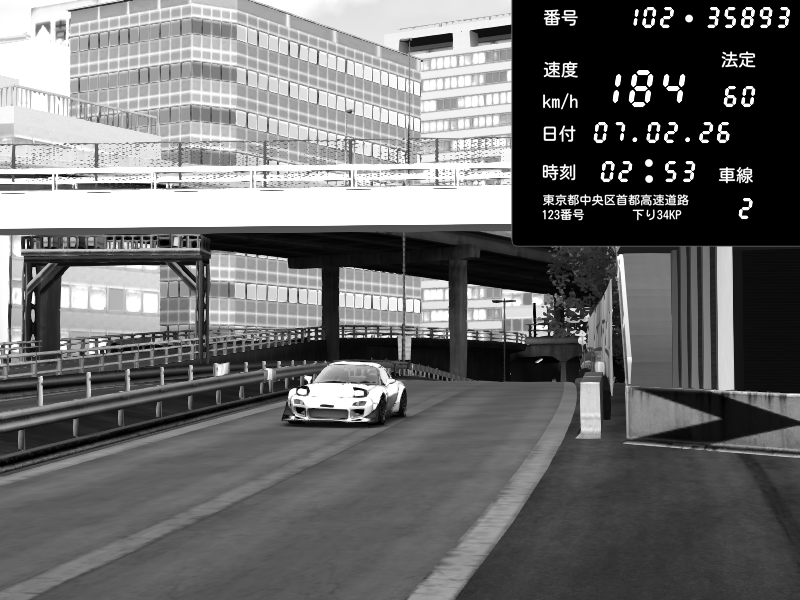 | 2026/02/07 02:36 | C1外回り 京橋 | 240 / 60 km/h | Mazda RX-7 FD3S FEED Afflux GT3 | CAPTURE |