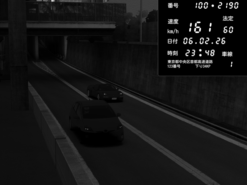 | 2026/02/06 23:50 | C1内回り 竹橋JCT | 159 / 60 km/h | Honda NSX [NA1] PVLSX | CAPTURE |