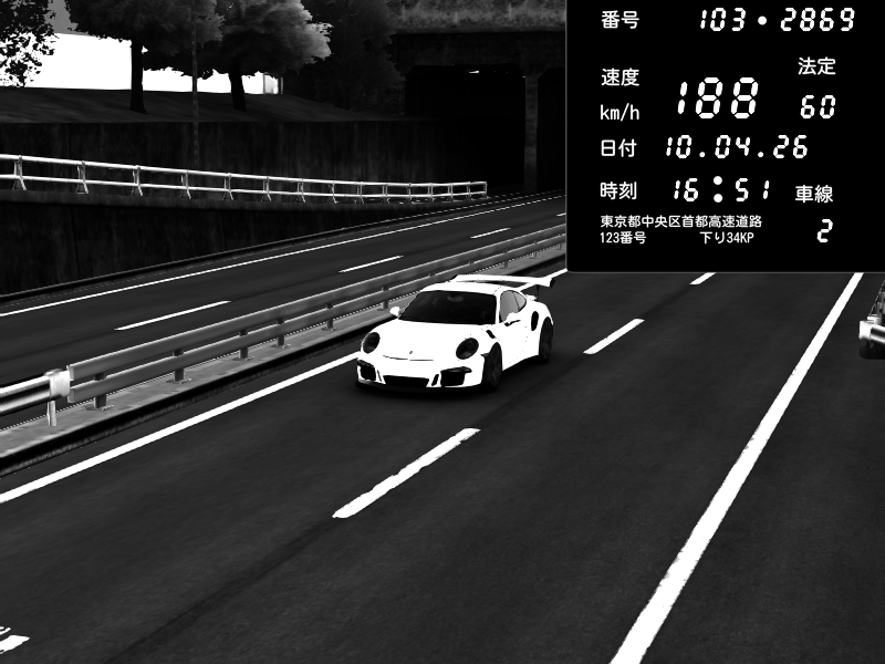 | 2026/04/10 16:51 | C1内回り 京橋 | 179 / 60 km/h | Porsche 911 GT3 RS | CAPTURE |
