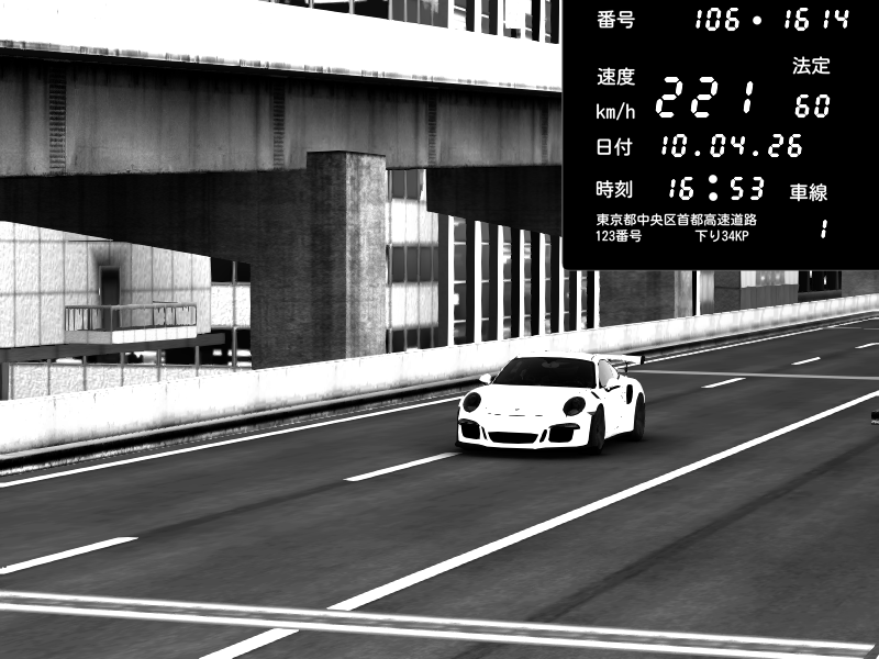 | 2026/04/10 17:30 | C1内回り 竹橋JCT | 120 / 60 km/h | Porsche 911 GT3 RS | CAPTURE |