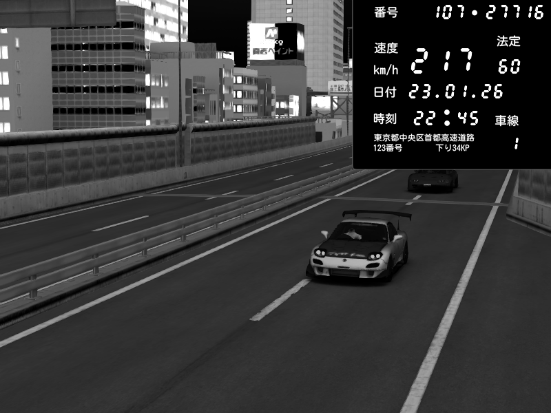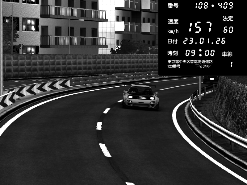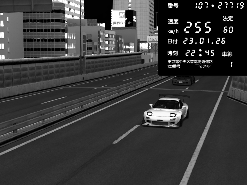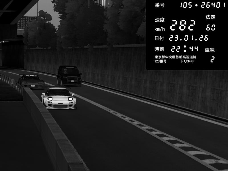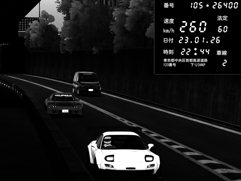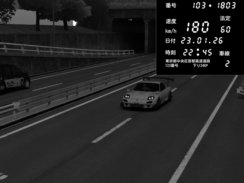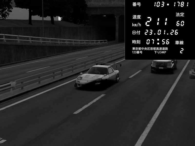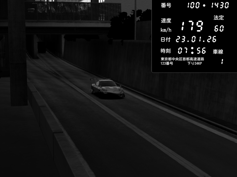 | 2026/01/23 22:45 | C1内回り 銀座 | 180 / 60 km/h | Player | Mazda RX-7 FD3S RE Amemiya | CAPTURE |