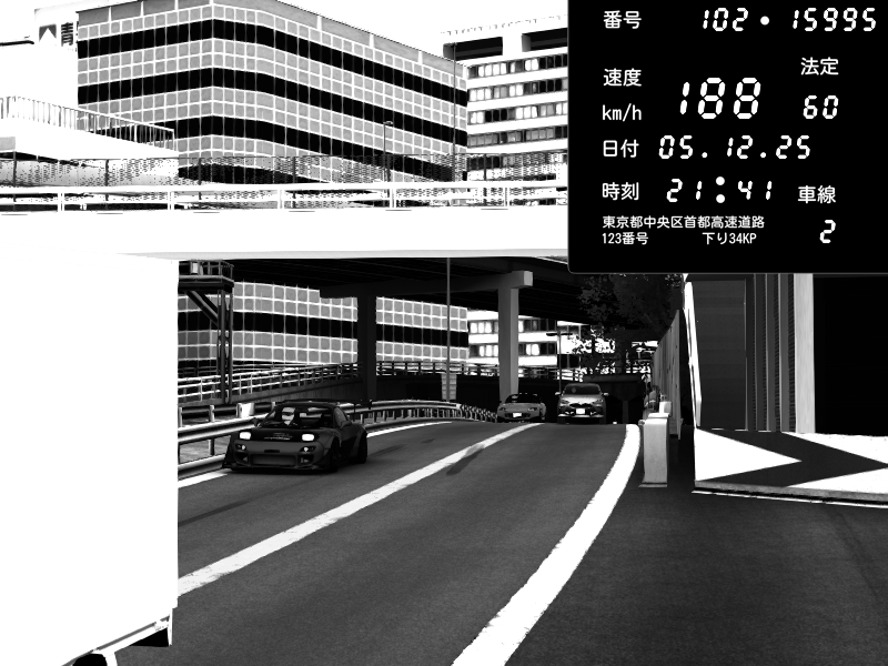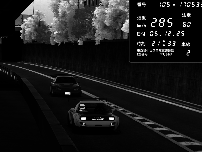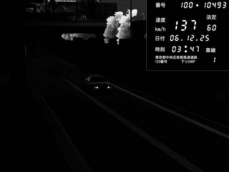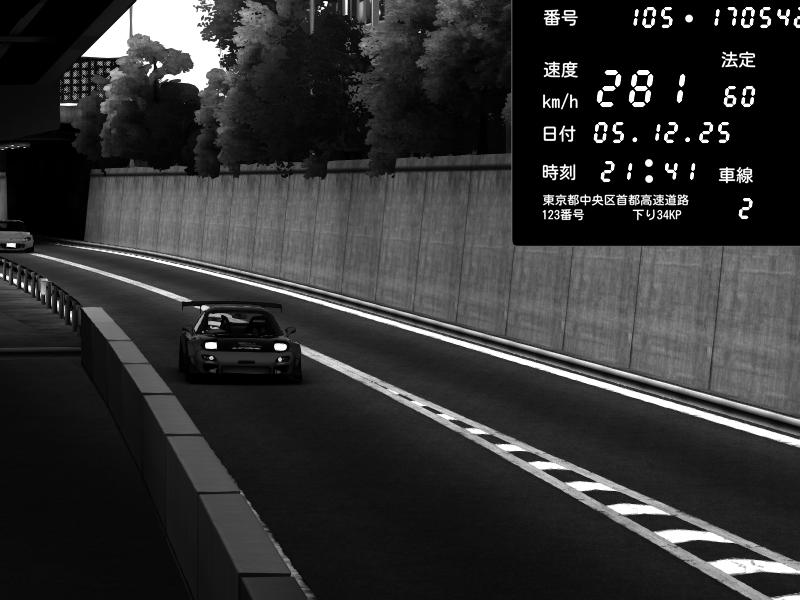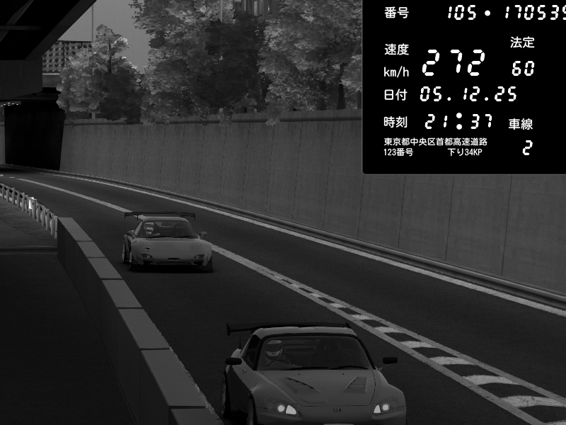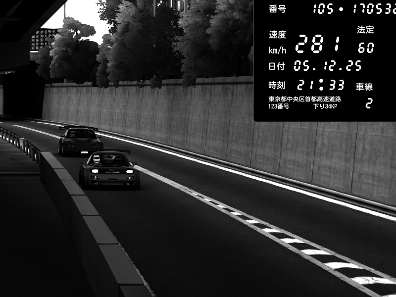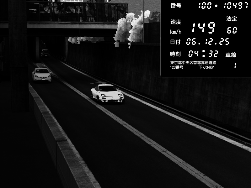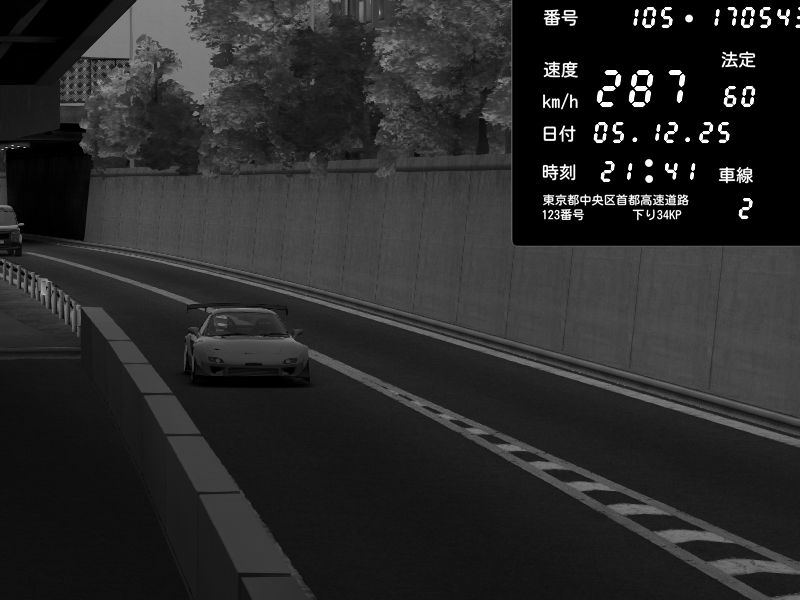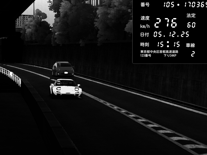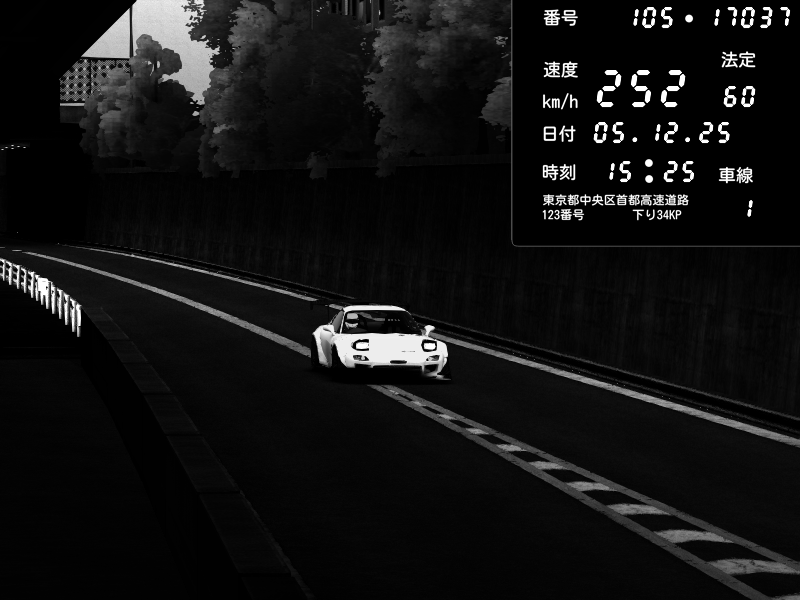 | 2025/12/05 15:16 | C1外回り 京橋 | 276 / 60 km/h | ナイトシフト | Mazda RX-7 FD3S FEED Afflux GT3 | CAPTURE |