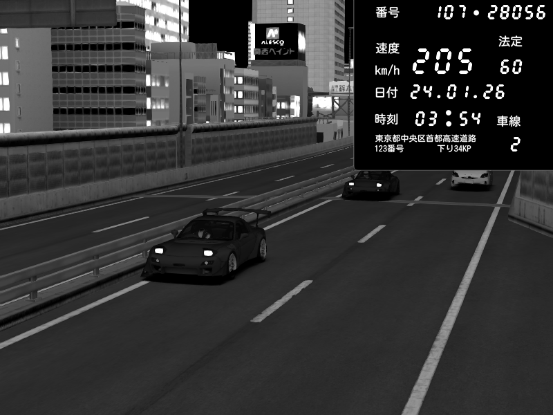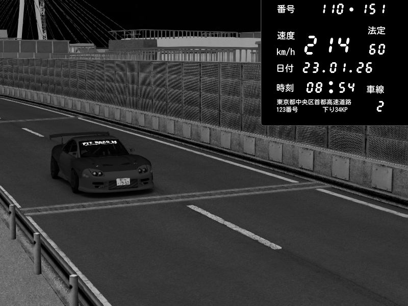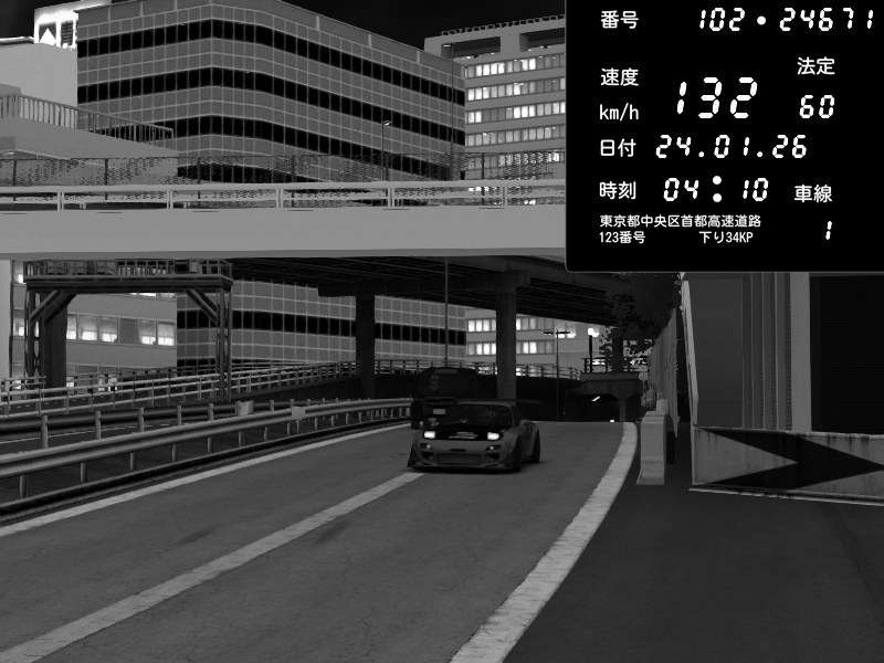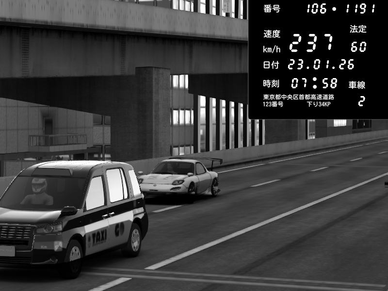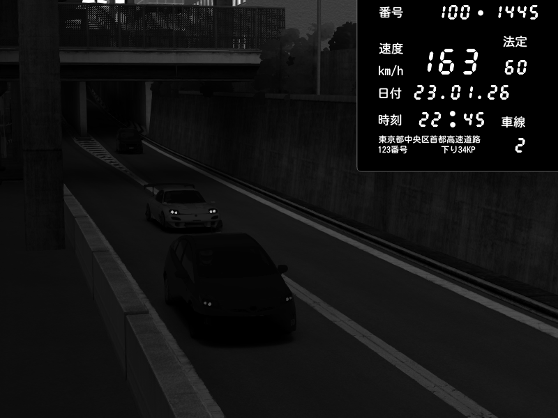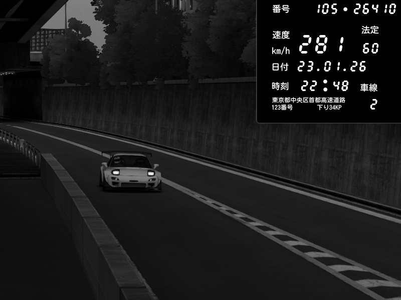 | 2026/01/23 22:45 | C1内回り 京橋 | 163 / 60 km/h | Player | Mazda RX-7 FD3S RE Amemiya | CAPTURE |