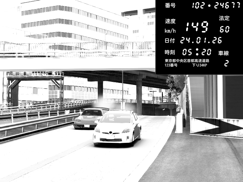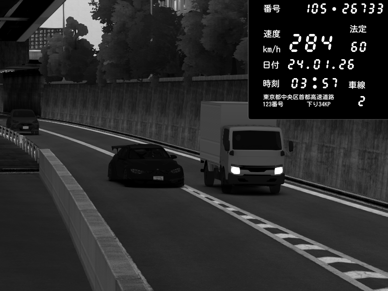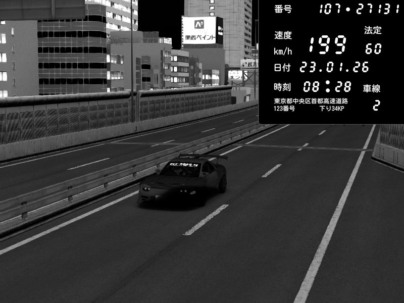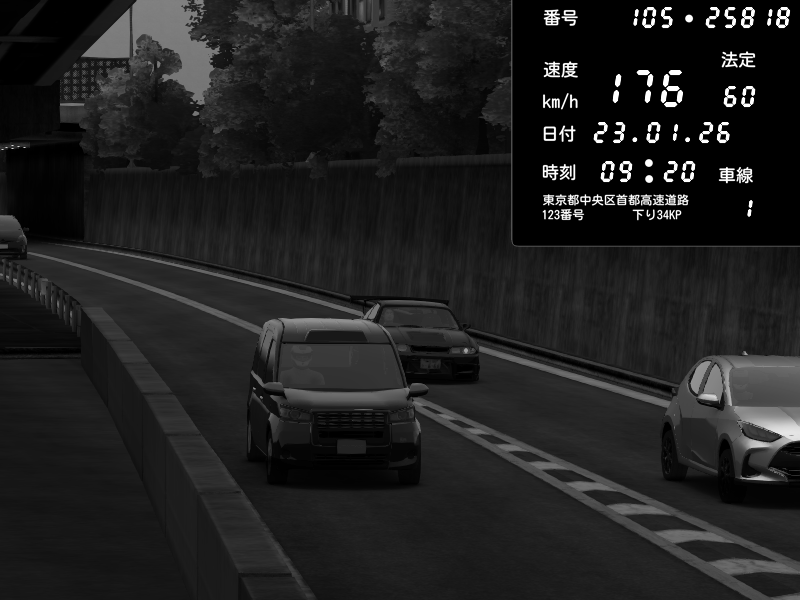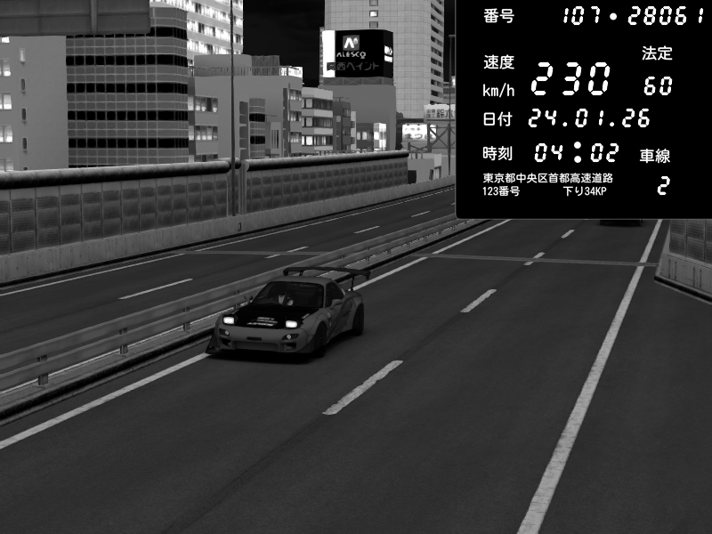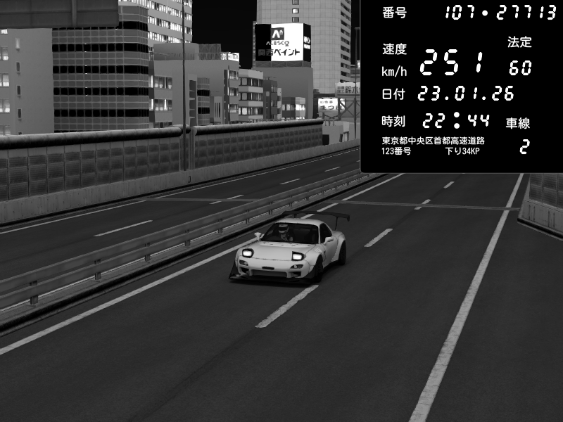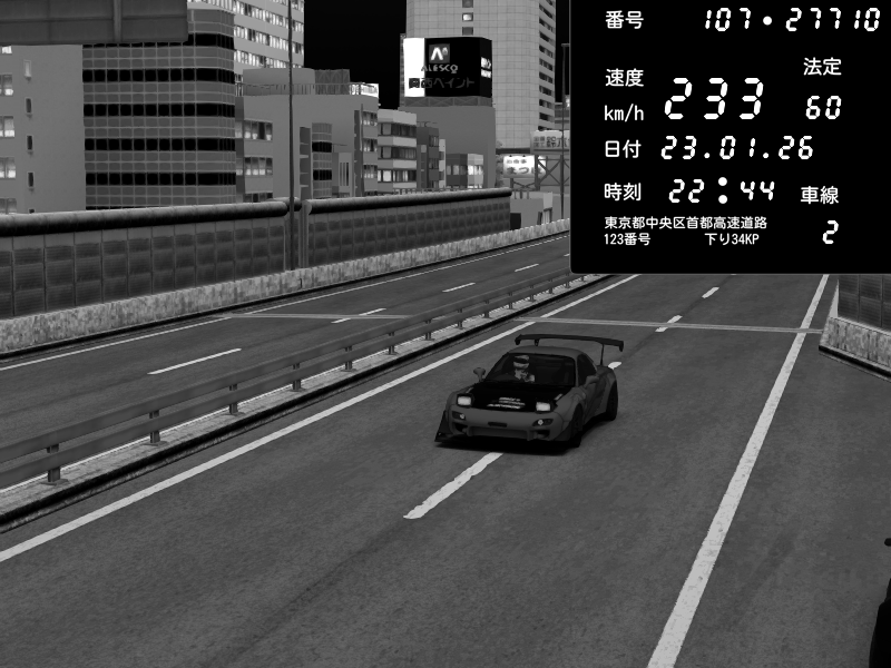| 2026/01/23 22:45 | C1内回り 京橋 | 163 / 60 km/h | Player | Mazda RX-7 FD3S RE Amemiya | CAPTURE |