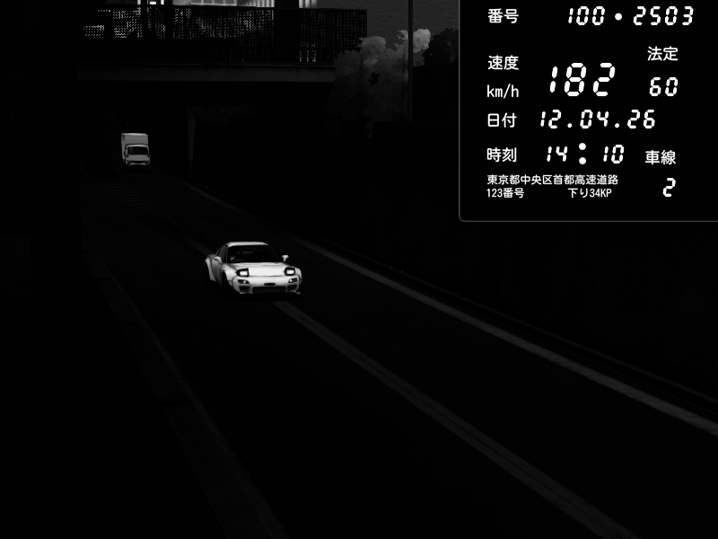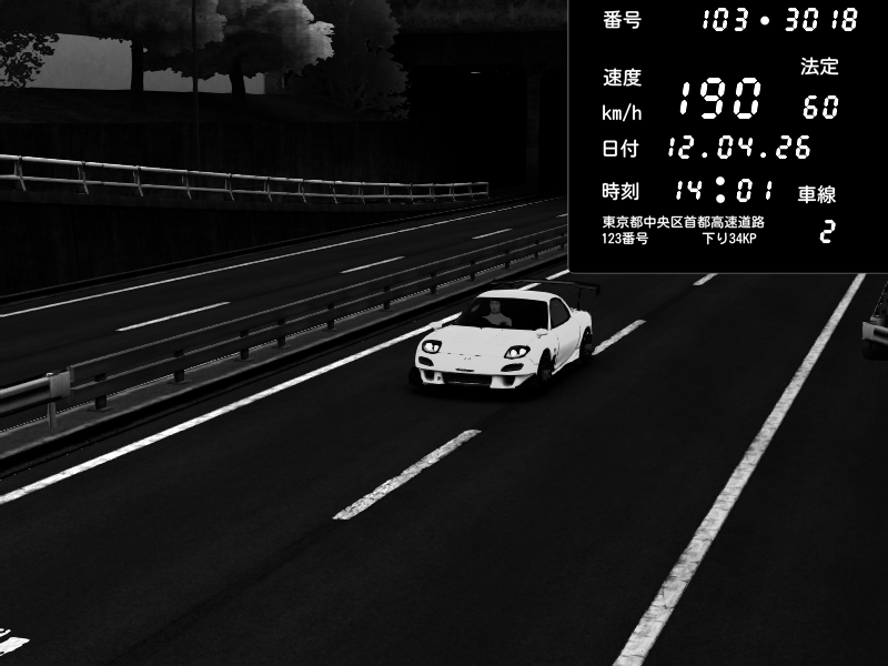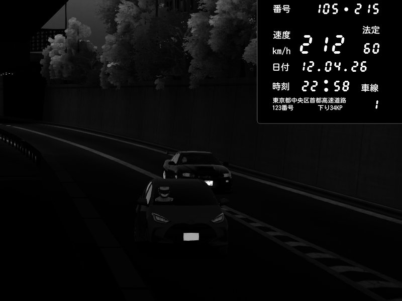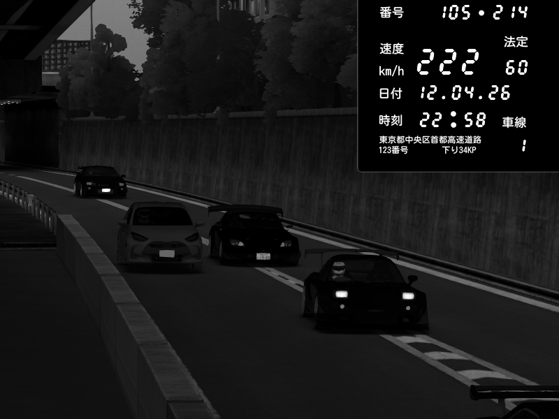 | 2026/04/12 22:54 | C1外回り 芝公園 | 211 / 60 km/h | SHOW5-S.R.C.- | Pit Road M - Mitsubishi GTO Twin Turbo | CAPTURE |