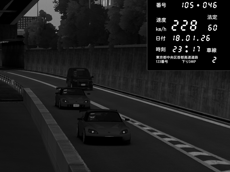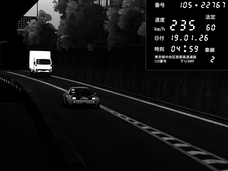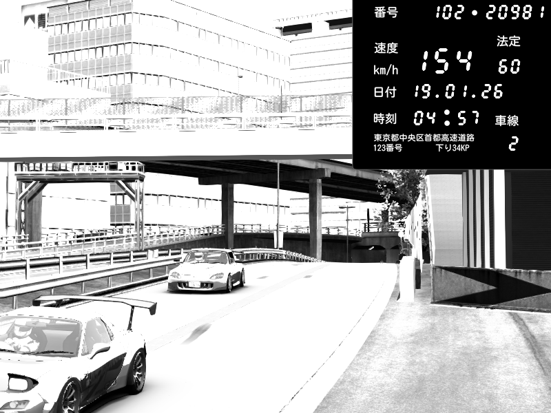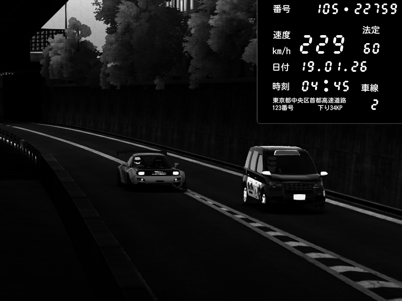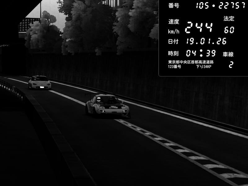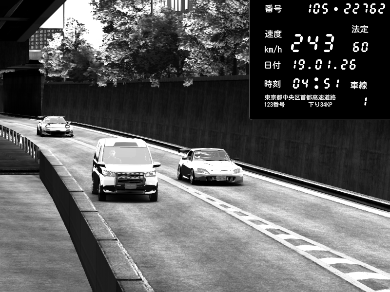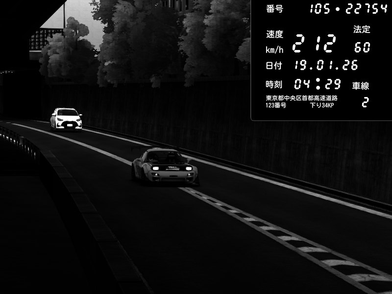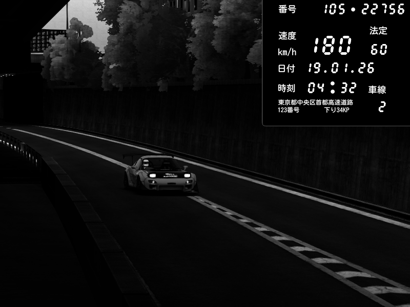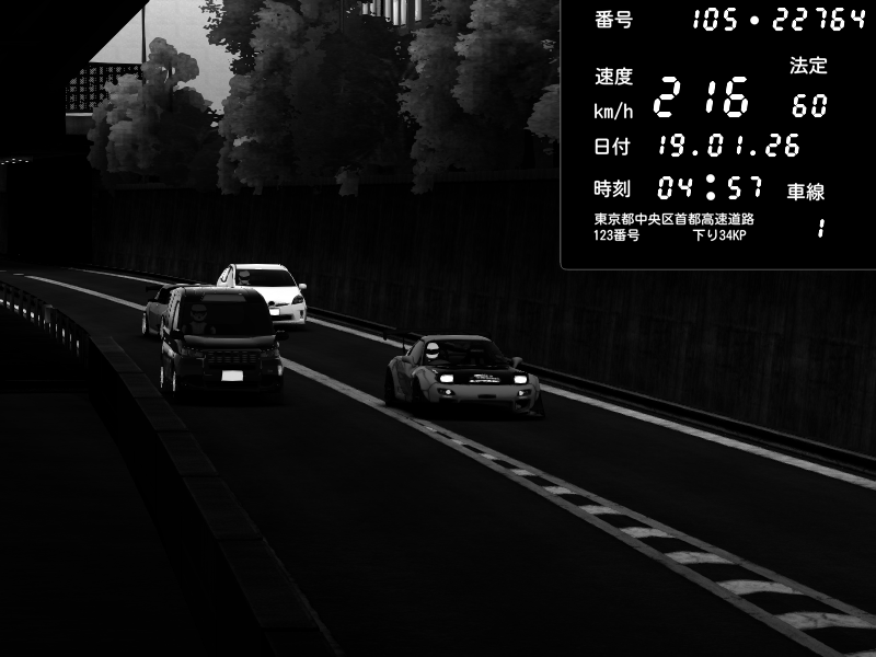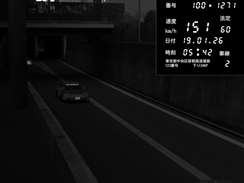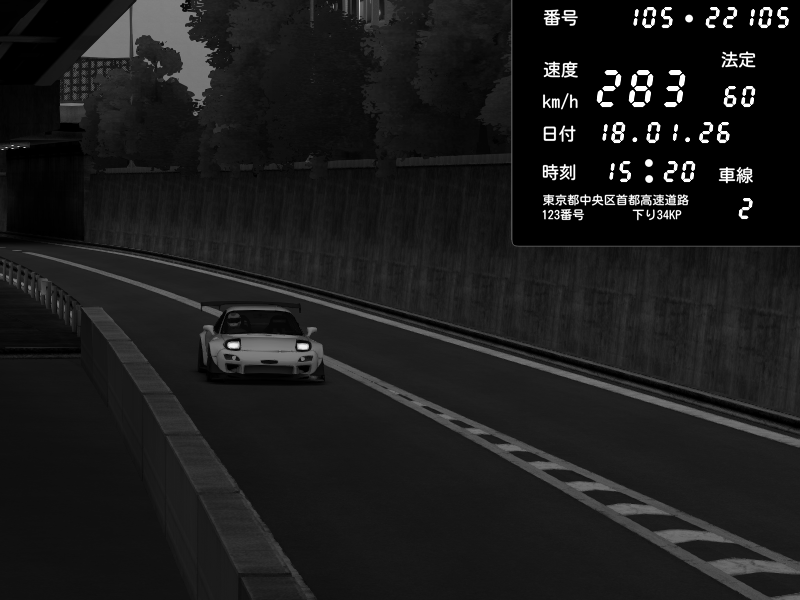 | 2026/01/18 15:30 | C1外回り 京橋 | 282 / 60 km/h | HellAkey | Mazda RX-7 FD3S FEED Afflux GT3 | CAPTURE |