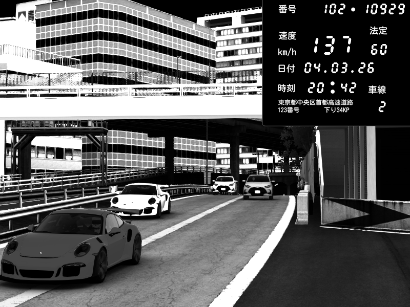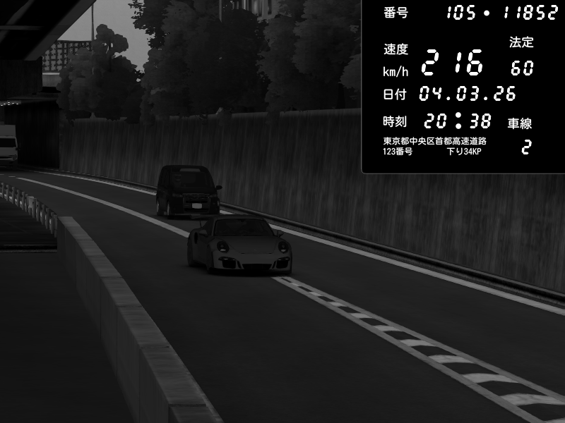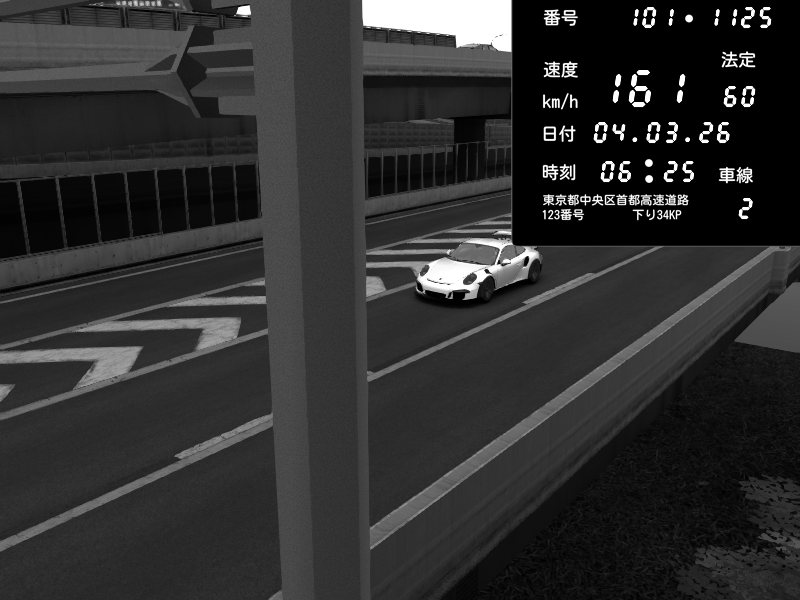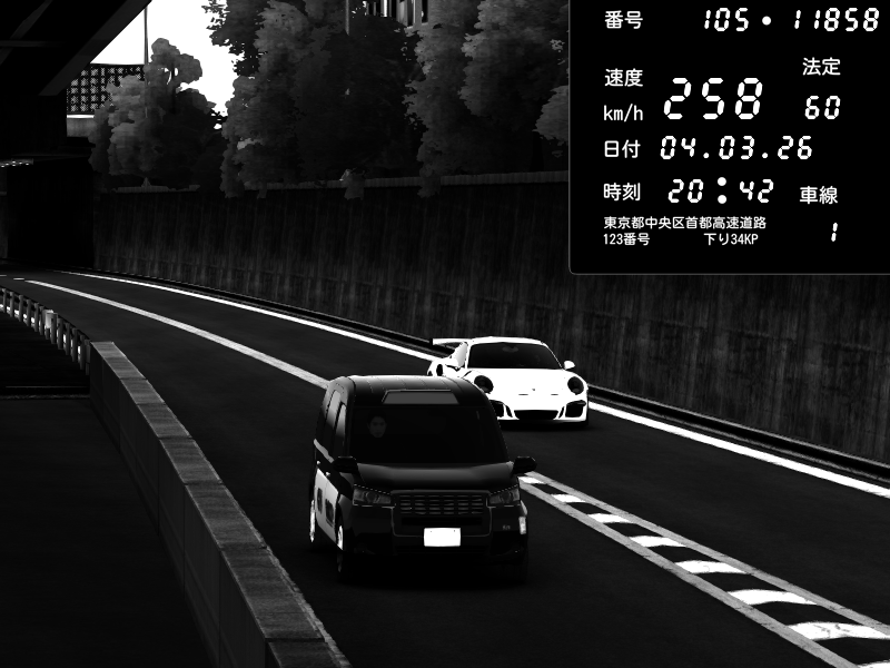 | 2026/03/04 20:43 | C1外回り 新富町 | 137 / 60 km/h | Masakichi | Porsche 911 GT3 RS | CAPTURE |