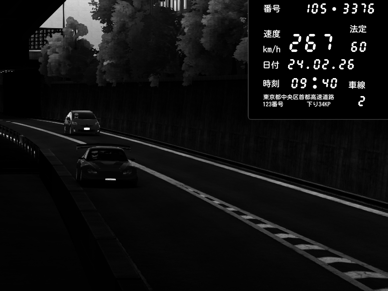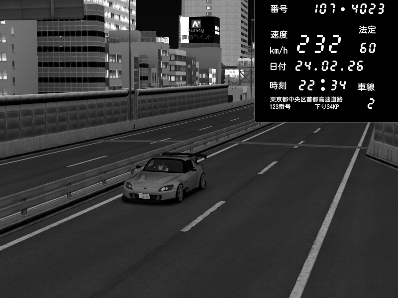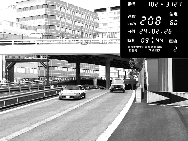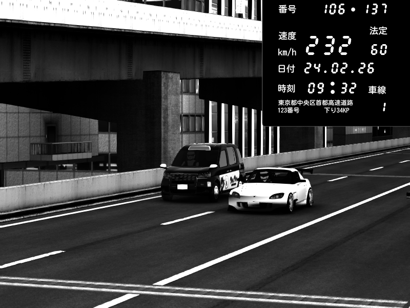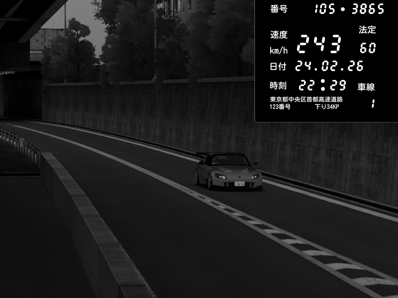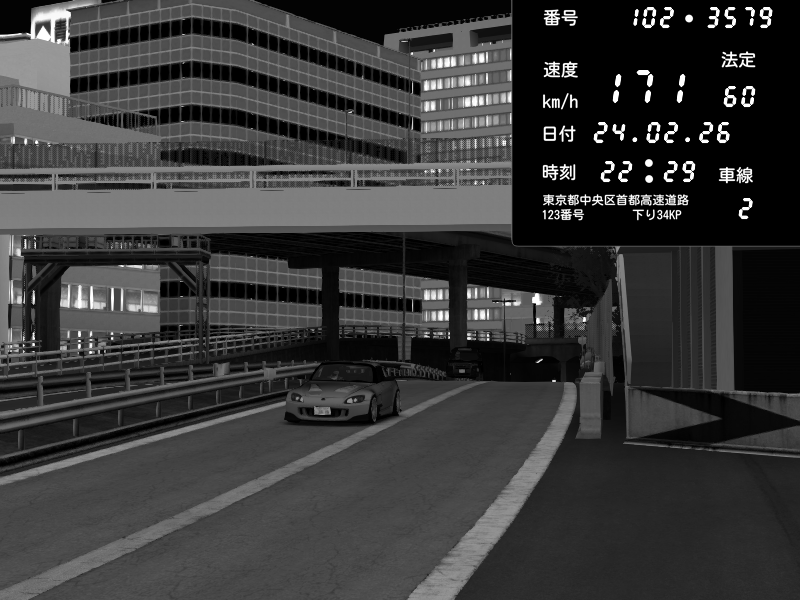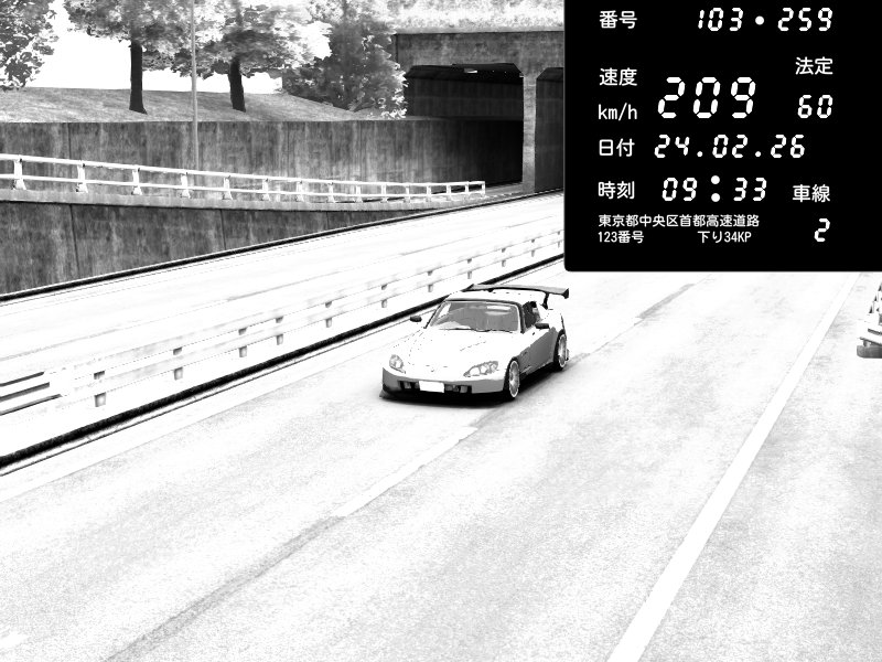 | 2026/02/24 22:37 | C1外回り 京橋 | 266 / 60 km/h | Shinra | Honda S2000 (AP2 - Legendary) | CAPTURE |