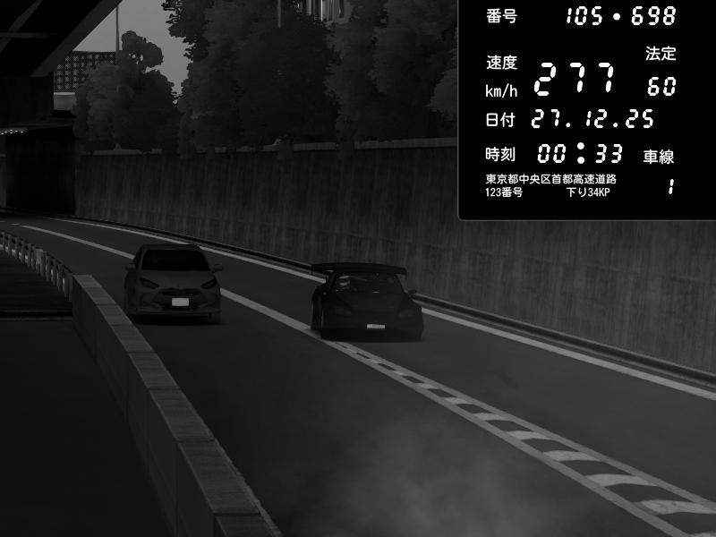 | 2025/12/27 00:26 | C1外回り 芝公園 | 260 / 60 km/h | MD | Pit Road M - Mitsubishi GTO Twin Turbo | CAPTURE |