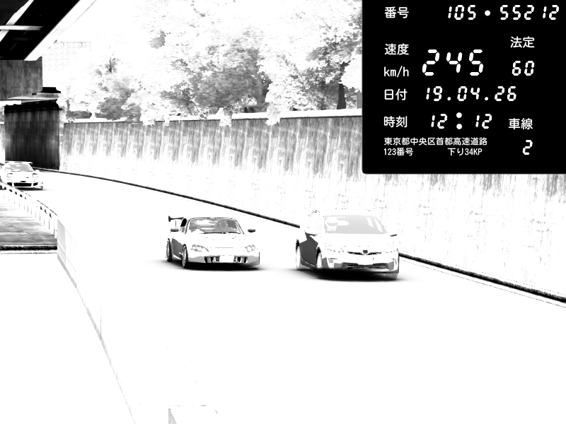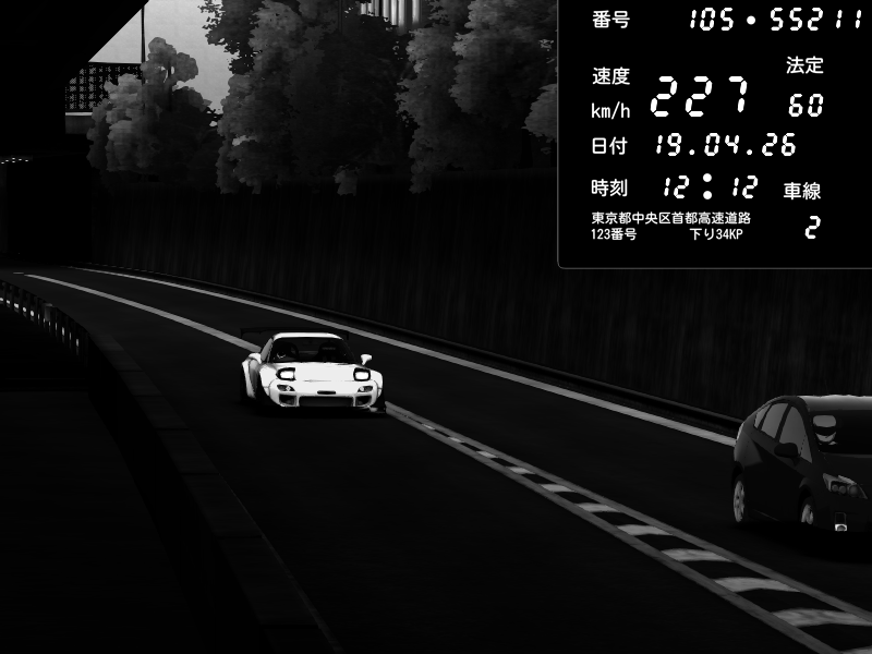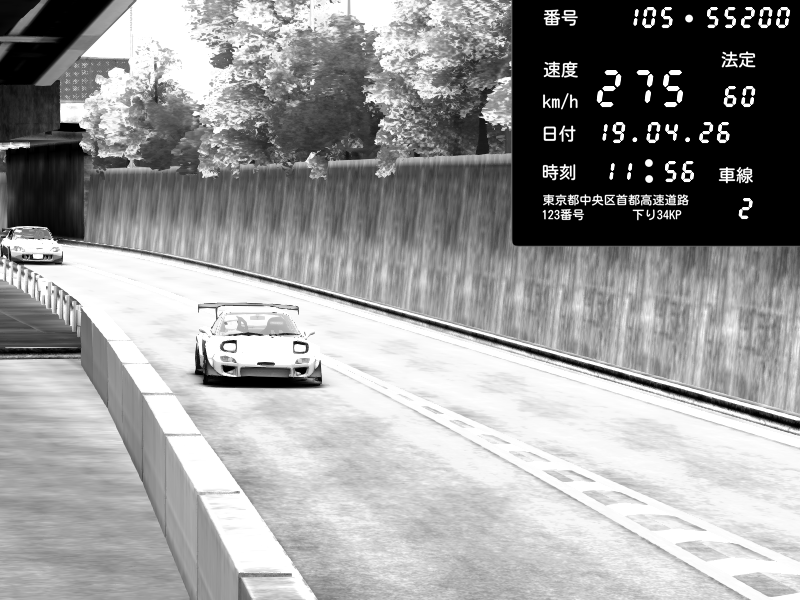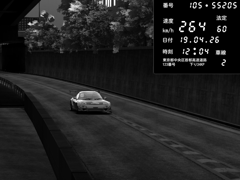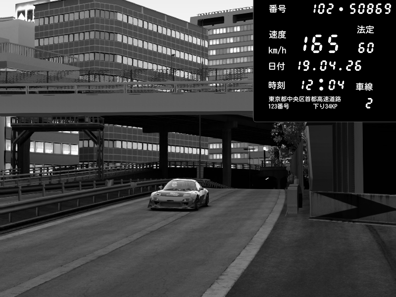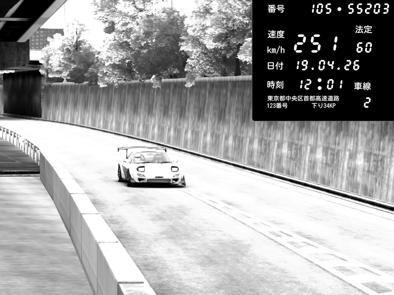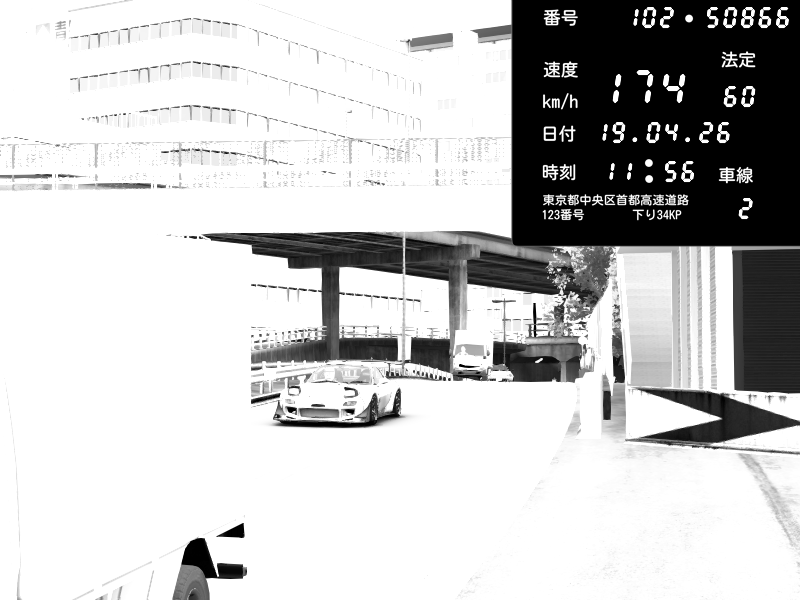 | 2026/04/19 04:35 | C1外回り 新富町 | 150 / 60 km/h | Player | Mazda RX-7 FD3S FEED Afflux GT3 | CAPTURE |