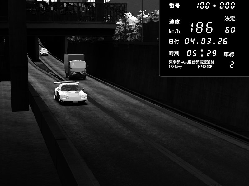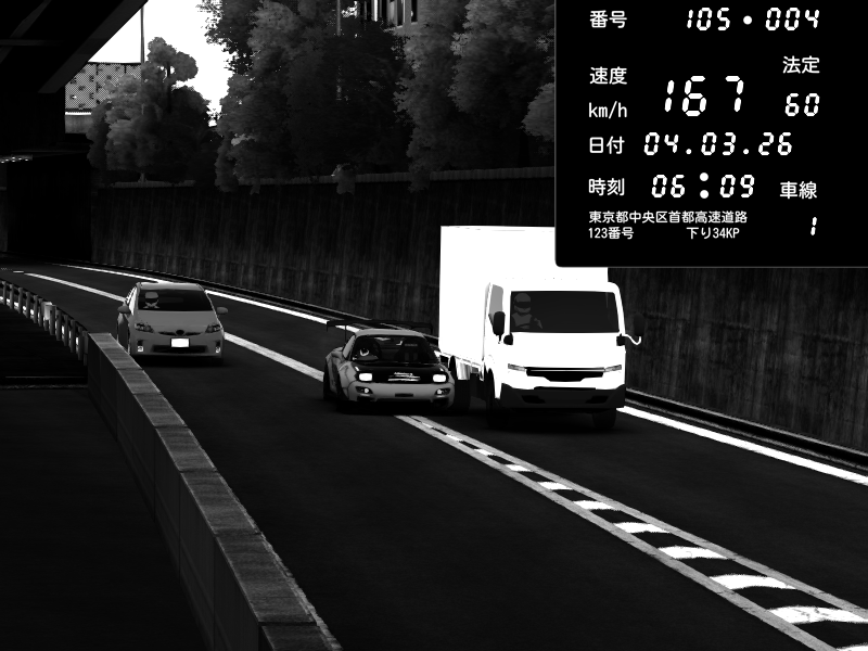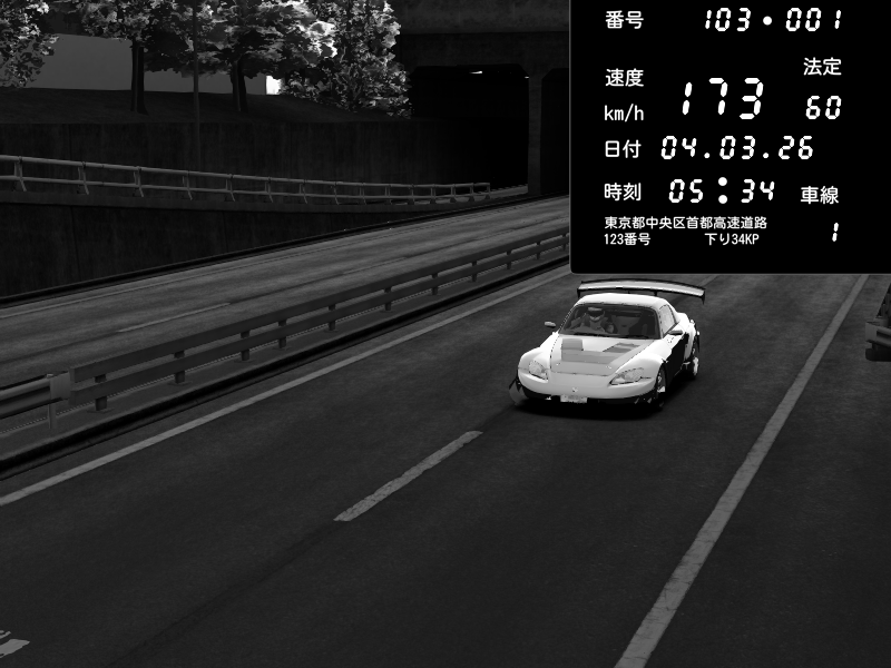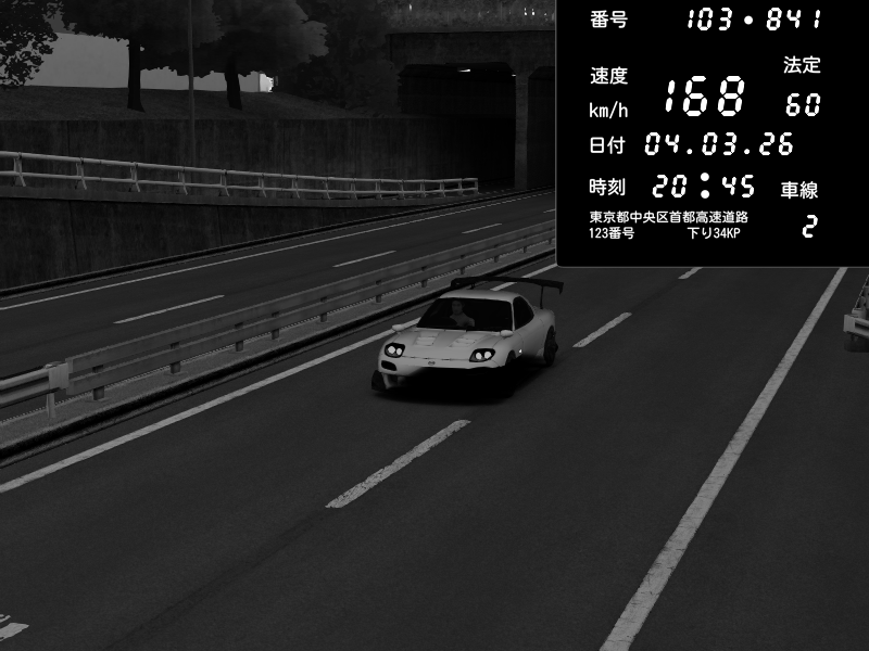 | 2026/03/04 20:45 | C1内回り 銀座 | 168 / 60 km/h | Fuxp | Mazda RX-7 FD3S RE Amemiya | CAPTURE |