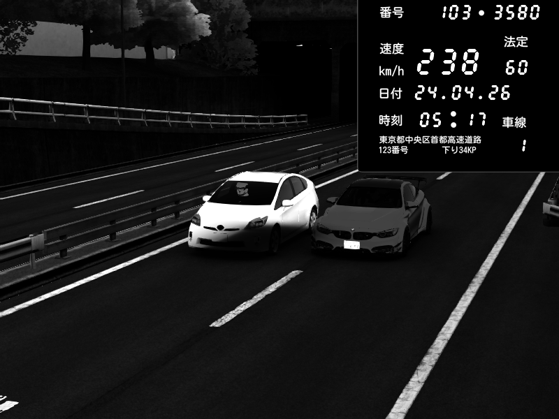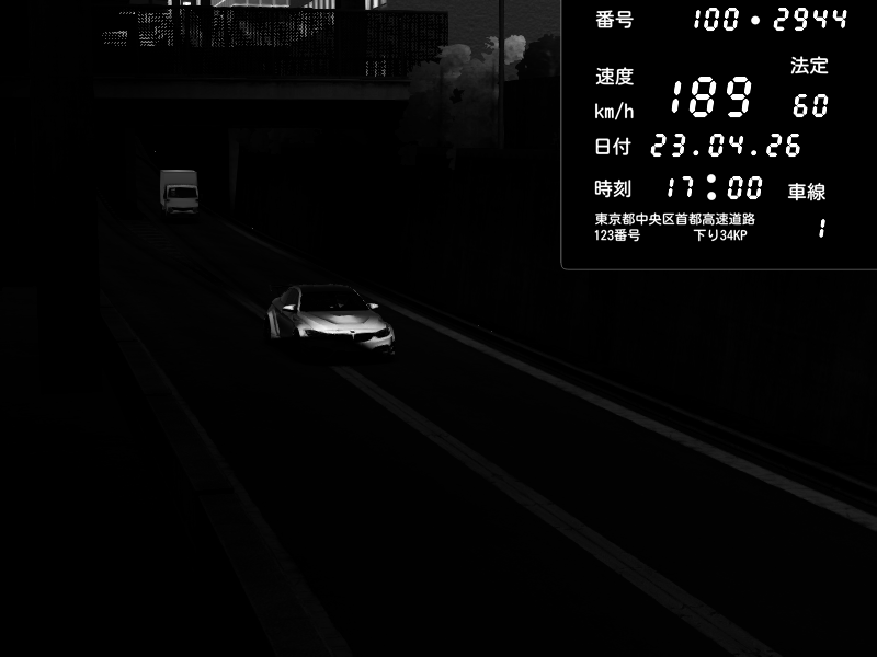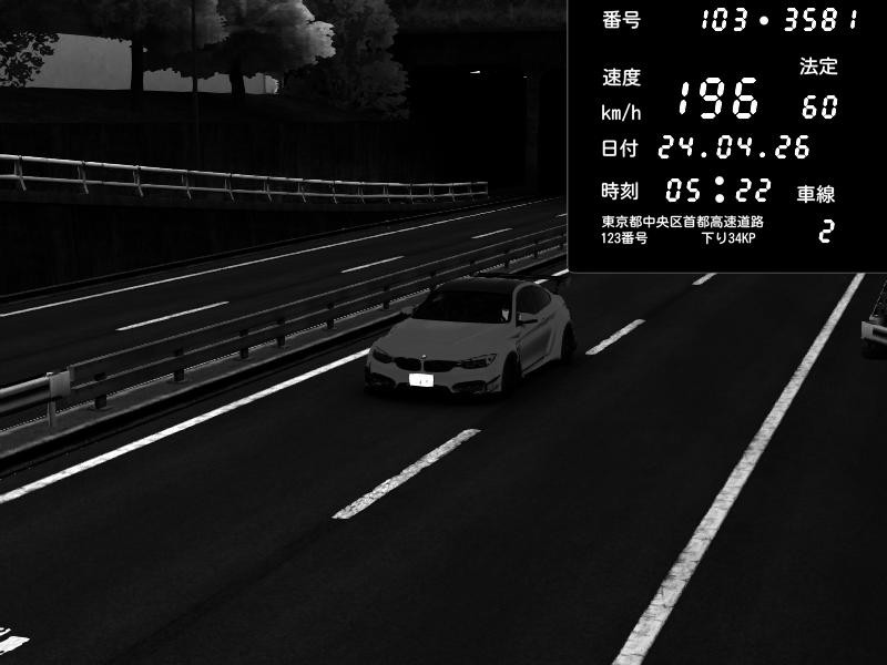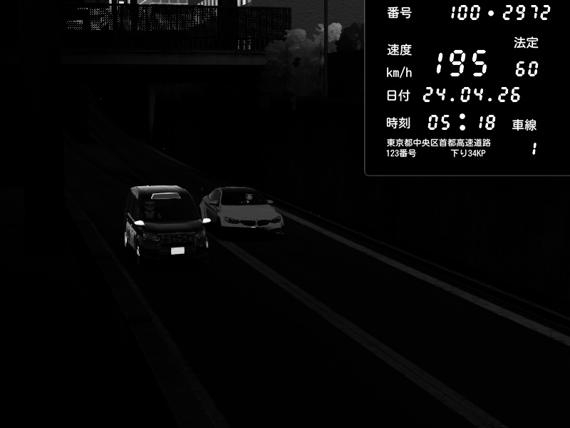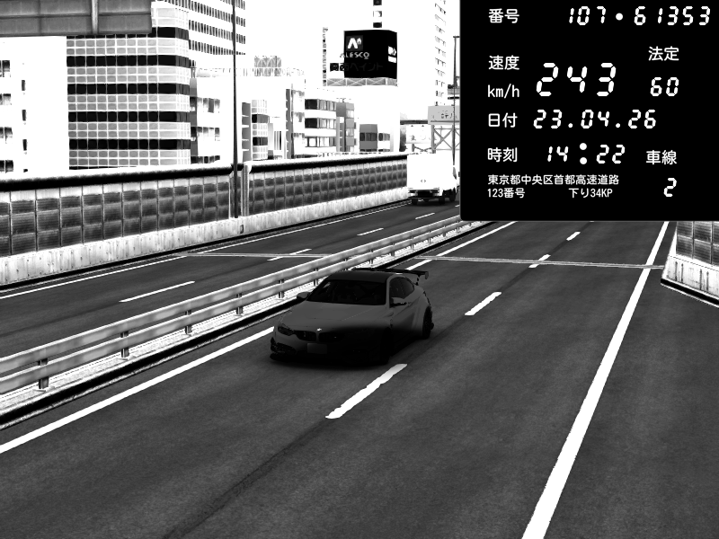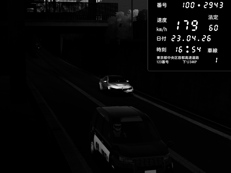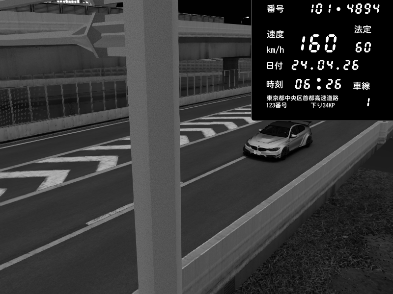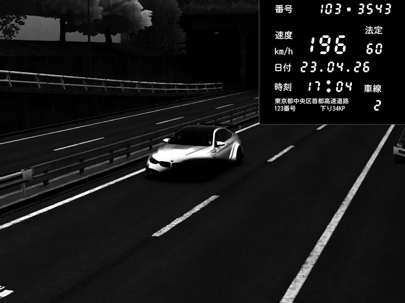 | 2026/04/23 16:57 | C1内回り 竹橋JCT | 193 / 60 km/h | jik | BMW M4 crash.Sp Varis Widebody | CAPTURE |