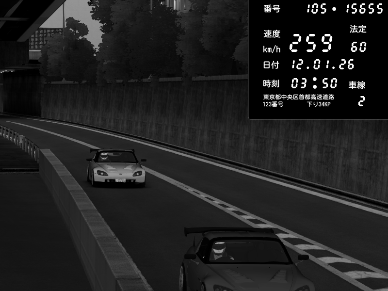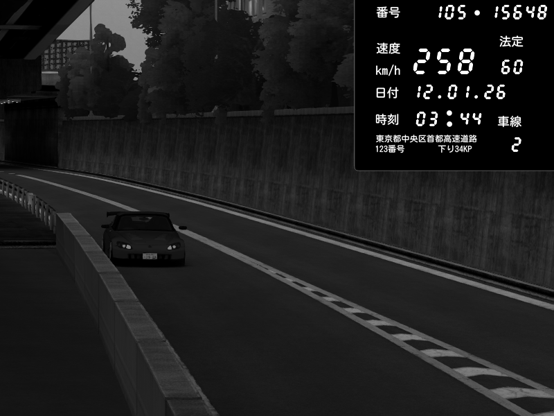 | 2026/01/11 10:02 | C1外回り 京橋 | 258 / 60 km/h | Sporkulon | Honda S2000 (AP2 - Legendary) | CAPTURE |