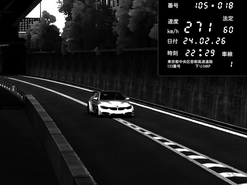 | 2026/02/24 22:29 | C1外回り 京橋 | 271 / 60 km/h | siro | BMW M4 crash.Sp Varis Widebody | CAPTURE |