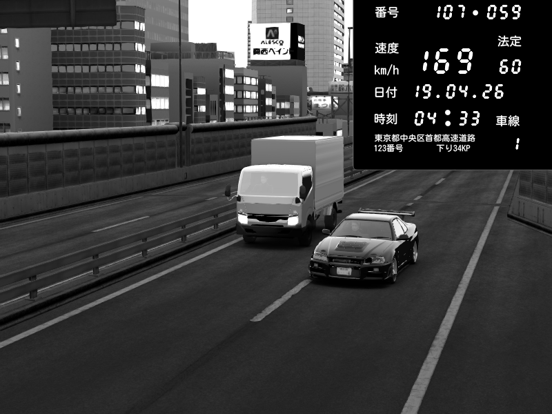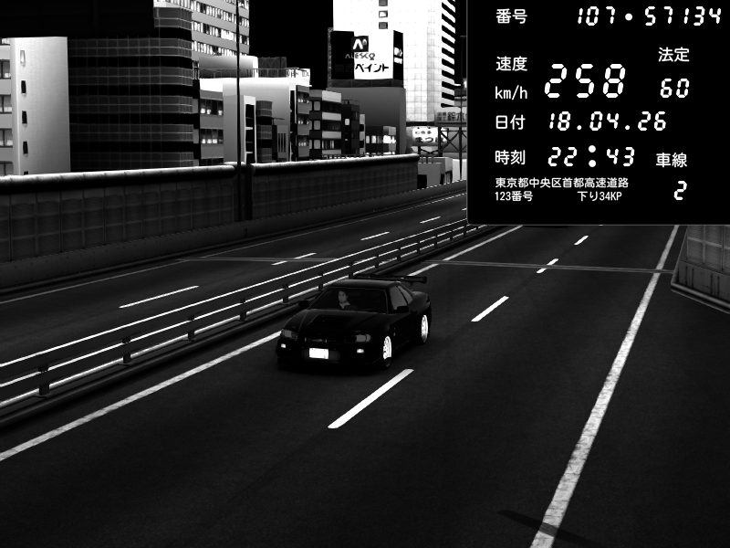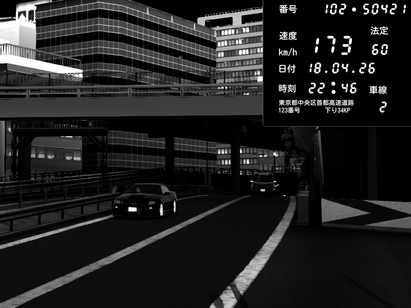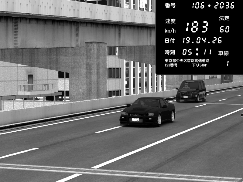 | 2026/04/18 22:46 | C1外回り 新富町 | 173 / 60 km/h | Kurokabe/S.R.C | Nissan Skyline GT-R R34 Nismo Omori Factory S1 | CAPTURE |