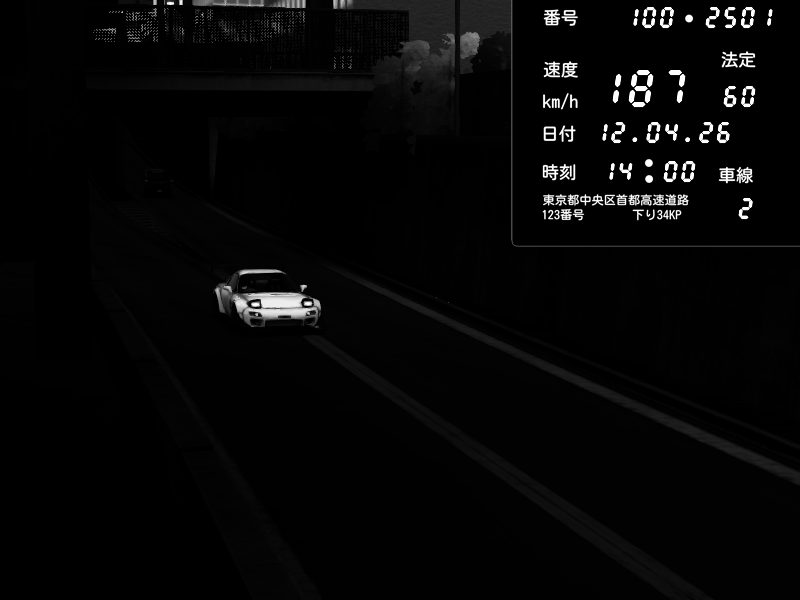 | 2026/04/12 22:57 | C1外回り 京橋 | 246 / 60 km/h | sasamitu | Mazda RX-7 FD3S FEED Afflux GT3 | CAPTURE |