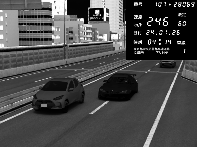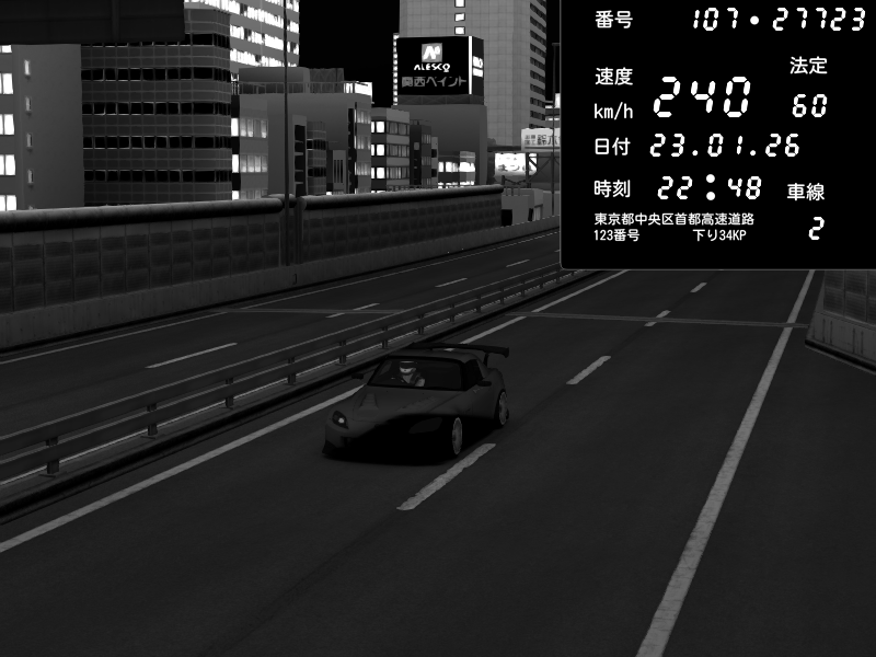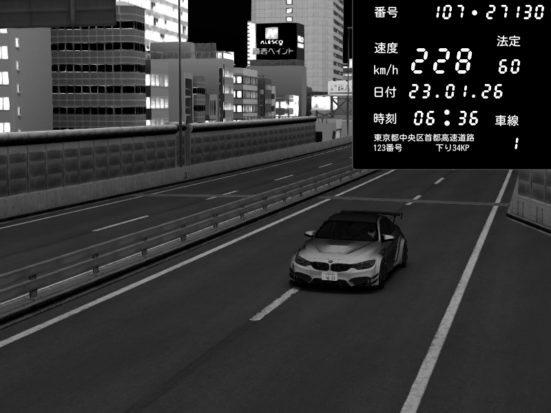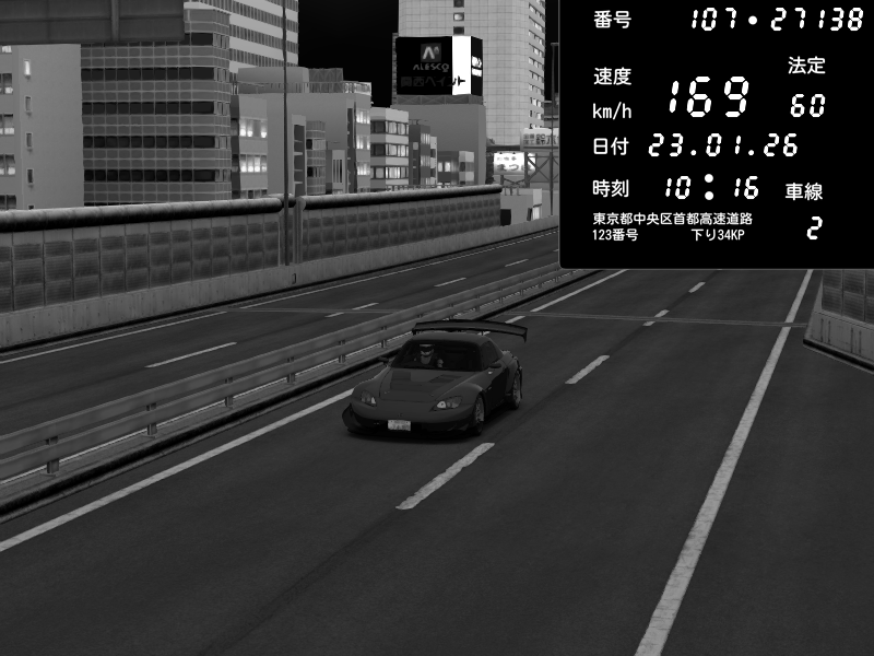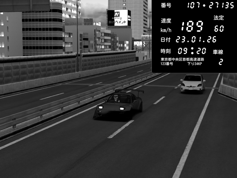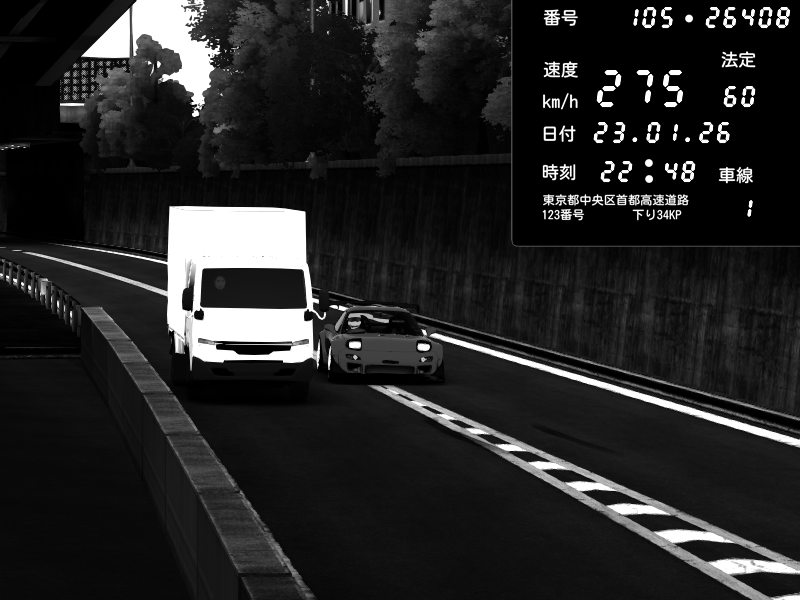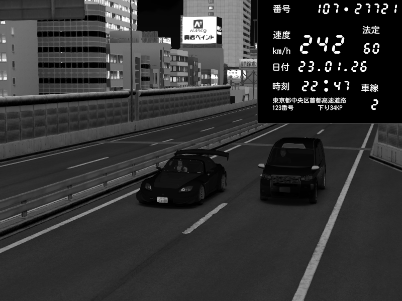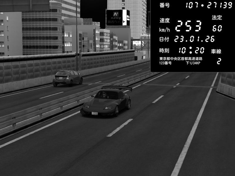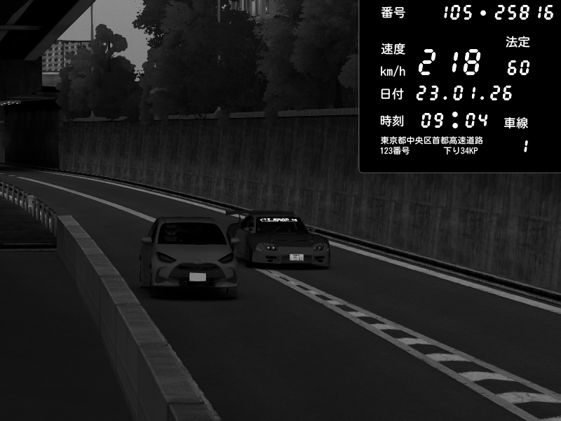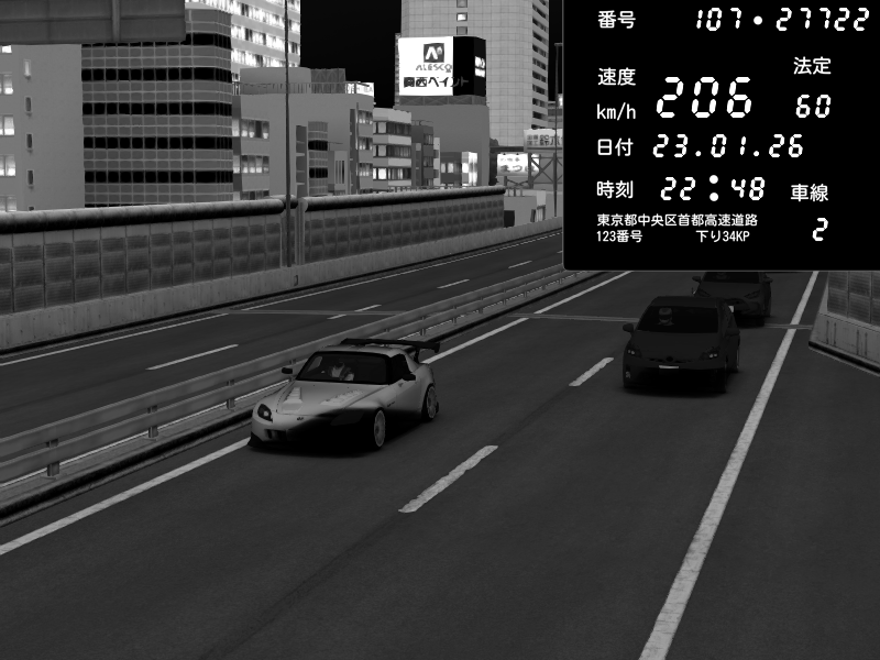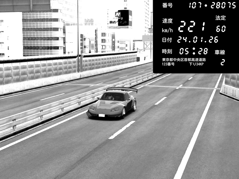 | 2026/01/23 22:46 | C1外回り 京橋 | 273 / 60 km/h | G29(LUT)&32TV60Hz3画面老人晩酌中 | Honda S2000 Turbo GT1 Amuse (AP1) | CAPTURE |