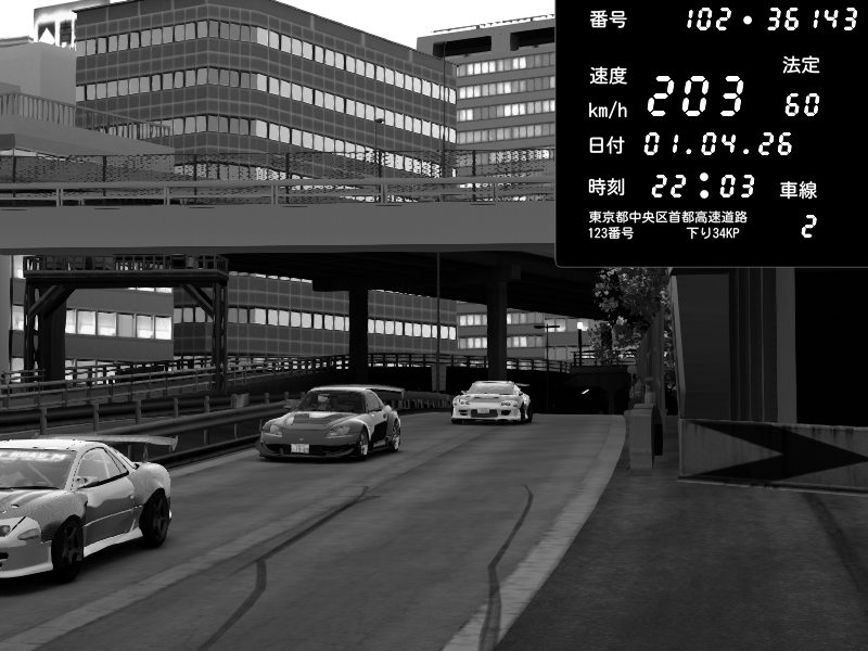 | 2026/04/01 22:03 | C1外回り 新富町 | 203 / 60 km/h | Nyaron | Honda S2000 Turbo GT1 Amuse (AP1) | CAPTURE |