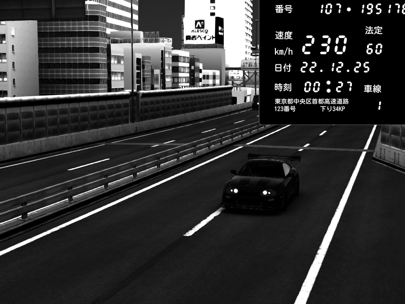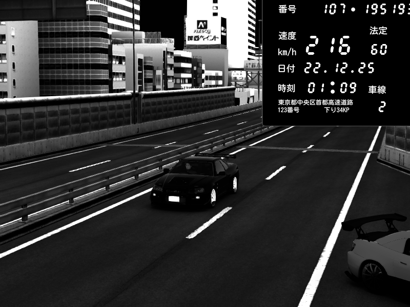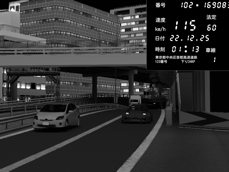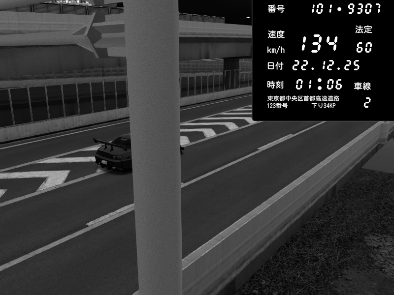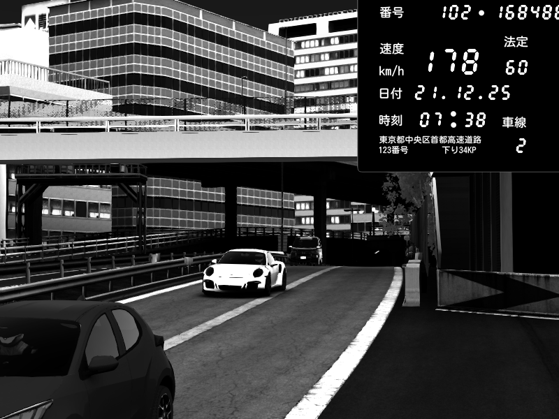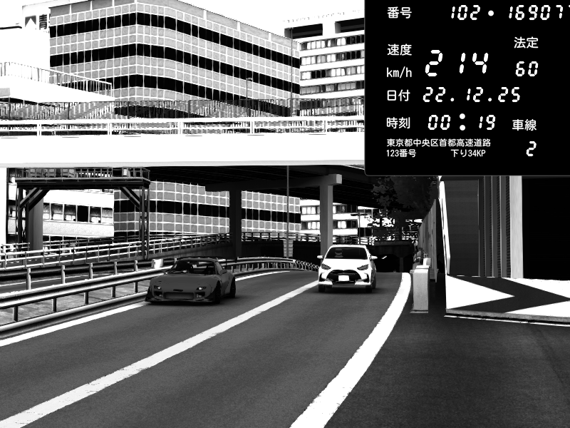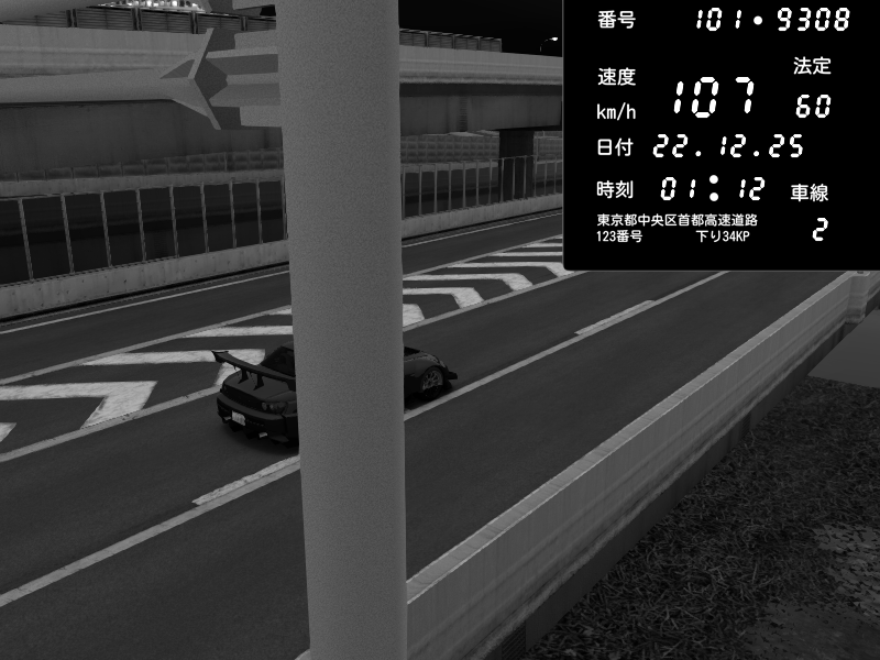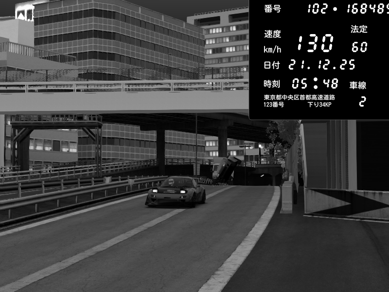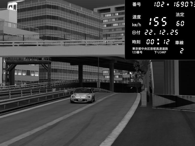 | 2025/12/22 01:09 | C1外回り 芝公園 | 211 / 60 km/h | Player | Honda S2000 Turbo GT1 Amuse (AP1) | CAPTURE |